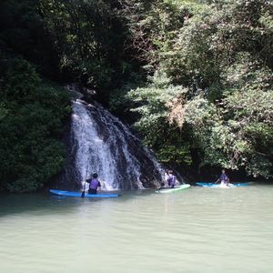 男子大学生4人での参加でした。SUPが初めてにも関わらずお兄さんが優しく教えてくれたので5分も経たないくらいで乗ることが出来ました。3kmほど漕ぎました。景色見ながら暑かったら川に浸かったり、滝の近くの水はとても冷たく夏の思い出にとても良いです。