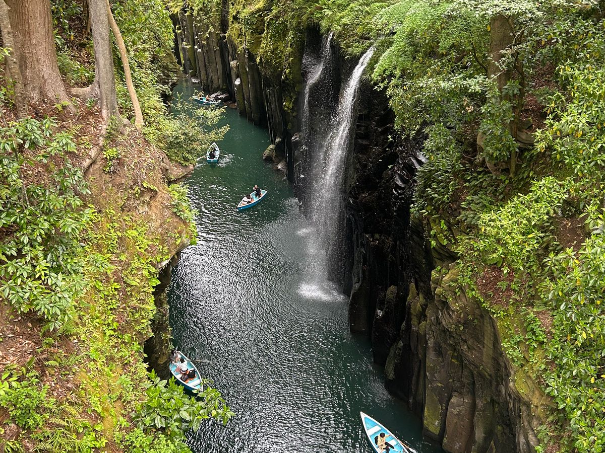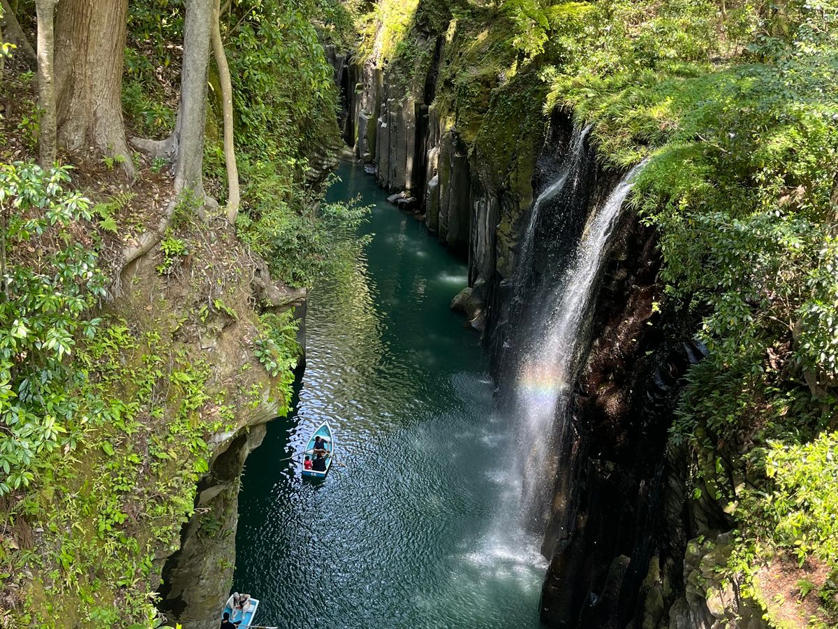 熊本から高千穂峡と阿蘇。道をよく知るドライバーさんが、観光案内や写真を撮ってくれながら、効率よく回ってくれました。昔の修学旅行で見えなかった阿蘇火口も見えて、とてもよかったです。気になっていたそうめん流しとソフトクリームもおいしくて、大満足の旅になりました。