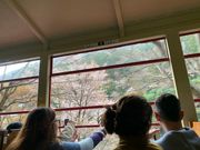 荷馬車みたいな車両ですが、11月の乗車した際は温度など快適でした。 景色も見応えありました。 その後、バスで移動して川下りでしたが、船頭さん方のお話がとても面白く、あっという間に嵐山に到着しました。 最後に売店船がきて団子と甘酒を買いましたが、船の上ということもあり、とても美味しかったです。 嵐山は激混みでつかれましたが、このツアーは快適でした。