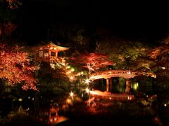 僧侶の読経が流れる伽藍の中で、夜間照明により鮮やかに映し出される紅葉を満喫