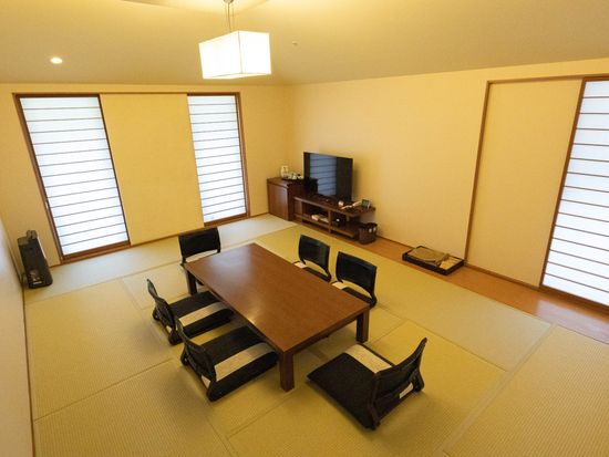5名様までご利用いただける広々とした和室です。天然木を使用した家具や羽毛布団など質感にこだわりました。