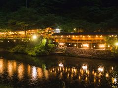 京都高雄「もみぢ家別館 川の庵」でいただく春限定の夕食プラン。 清滝川沿いにしつらえた屋根付きの川床席にて、昼とはまた違った夜の雰囲気を味わいながら、京の美食をご堪能ください。特選和牛しゃぶしゃぶやすき焼き、まだ少し肌寒いこの季節にぴったりの鍋料理をご用意してお待ちしております。自然にとけこむ里山の風情と共に、素敵なひとときをお過ごしください。