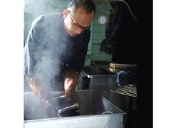 2色染めの場合は、たたみ直して浸す部分を変えて、染液に再度染め直し、水洗いを繰り返します。