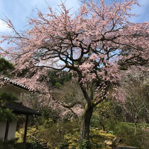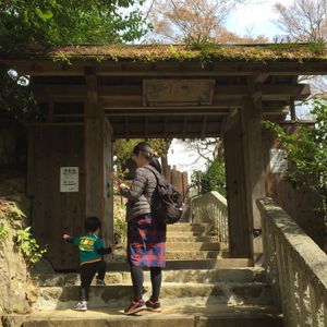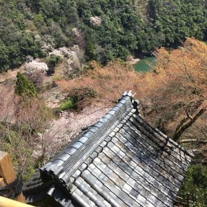 家族で嵐山に花見。人混みを避け奥嵐山の寺院へ。絶景、写経体験もさせて頂き安産祈願。