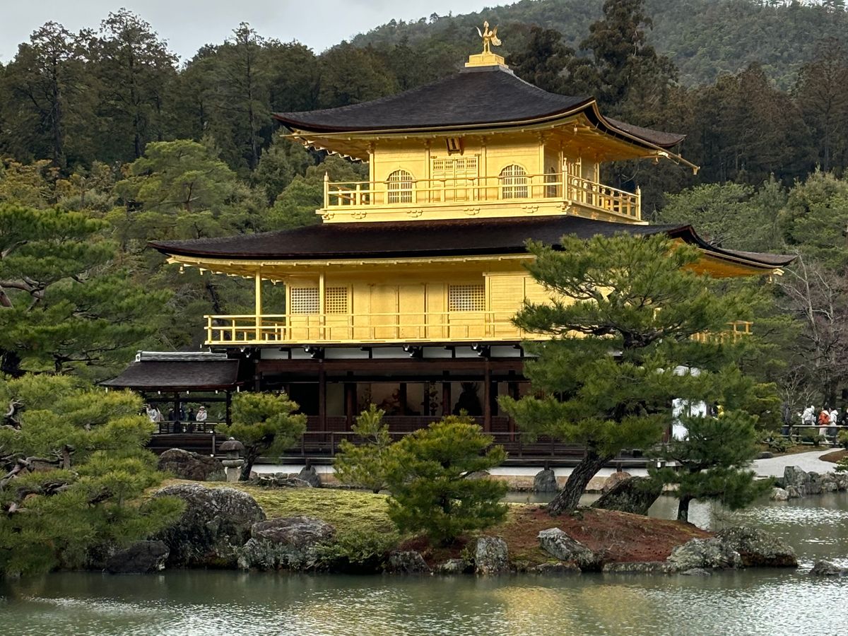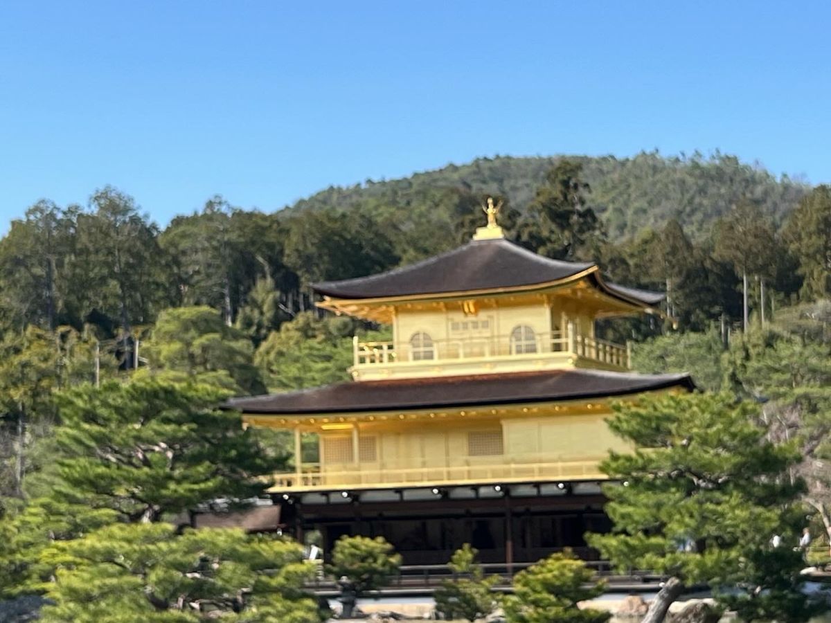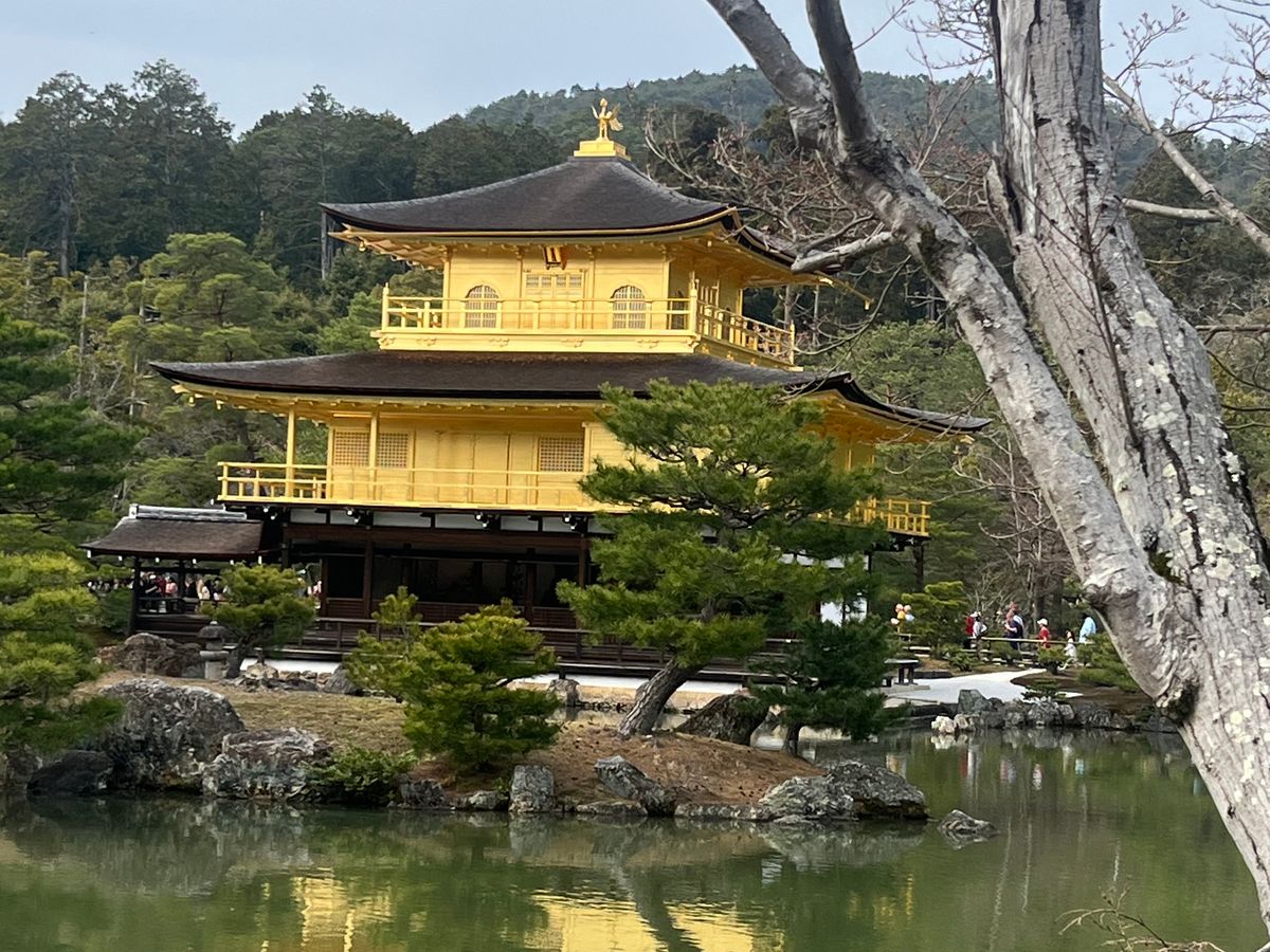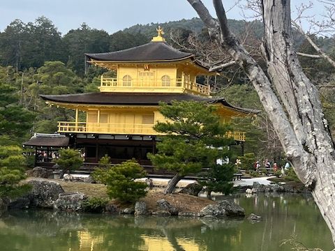 穏やかな日にちの水辺が金閣寺で逆さ金閣寺も出来ていて、大変貴重な金閣寺を観てきました~枝垂れ桜も見れて良かったーです。
