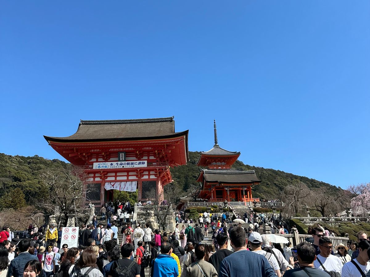 1番混む時期に今年はまだ開花していない桜のツアーに参加しました。日本人グループは数えるほどであとは色々な国の方たちと一緒でした。観光地では人の頭を見てばかりで心から京都を楽しみたいのでしたら桜(紅葉)の時期を外しても良いかと感じました。