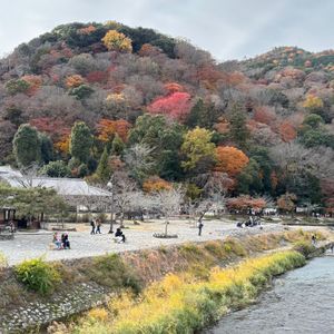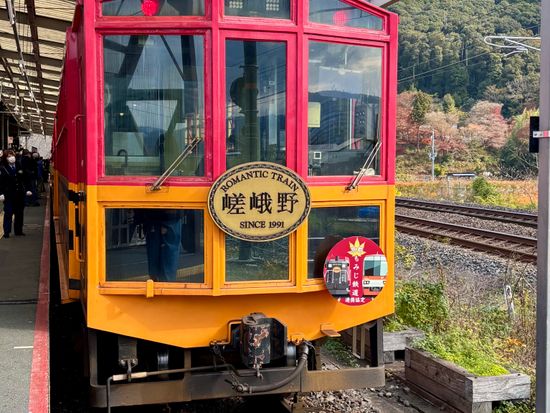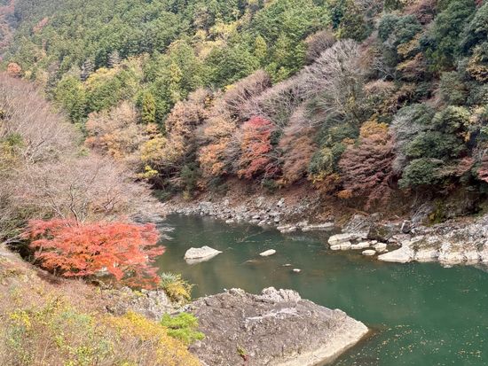 紅葉の時期の京都は初めての母との2人旅で母からのトロッコ列車と保津川下り気になると言われて利用しました。まず、トロッコ列車ですが左右どっちの席だったとしても紅葉がみられ、見える方の窓側の人は座って、見えない方の人は立ってみてokというスタイルでどっちの景色も堪能できました。そのあとの保津川下りはこの時期は水量が少ないそうでレインコートを持参はしてましたが使用せずとも全く濡れずにすみました!晴れていてかつ紅葉のベストタイミングだったそうで船頭さんも今日この時間めちゃくちゃベストタイミングだと乗ってすぐお墨付きを頂き、その言葉通り素晴らしい景色を眺めながら亀山〜嵐山までの川下りを楽しめました!正直100分ってきいたときは長いと思いましたが景色が素晴らしくて最後の方はあっという間に感じました。嵐山に到着する直前には船のコンビニでお団子を買いお団子を食べながら船に乗るという優雅な体験もできました。嵐山の自由行動はかなり混んでいたので渡月橋を渡って事前に予約していた昼食を食べてお土産屋さんをぶらぶらして終えましたが、食べ歩き等でお昼ご飯を済ませば観光にもう少し時間を割けるかもしれないなと思いました。帰りのバスは4割くらいが嵐山に残るとのことであまり人がいなかったので嵐山を満喫したい人はそれもありかなと思います。