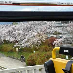 バスの2階に登った瞬間から雨がパラつきだし、2〜3分後には大雨になり、レインコートは渡されてたましたが、ずぶ濡れ状態で 折角の満開桜や神社が雨で全く目が開かない状態で 見れなかったのは残念でした。