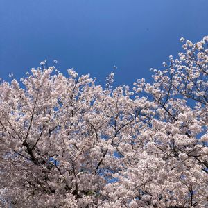 素晴らしい青空の下で、手に届きそうな満開の桜を楽しめました。