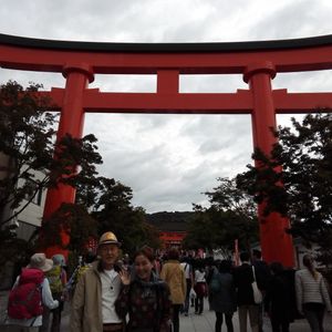 大阪梅田を出発する時は雨が結構降っていました。せっかくの京都なのに、と残念に思いましたが、京都に着く頃には、小雨となりました。まずは伏見稲荷大社へ。大きな鳥居があって、たくさんの人でした。テクテク上がり、いよいよ千本鳥居です。一度は訪れてみたかったのでワクワクです。雨も傘がいらないくらいになりました。千本鳥居をくぐると、何とも厳かな気持ちになりました。おもかる石は重かったです。残念ですが、望みはまだまだかないそうもありません。清水寺では晴れ間も覗きました。紅の紅葉に一瞬の青空がキレイです。さほど混雑しておらず、スムーズに参拝することができました。金閣寺の紅葉もよかったです。ツアーガイドのハリーさんもサイコーでした。今回のツアーは多国籍の方々とご一緒で、直接お話しすることはできなかったのですが、ハリーさんの流暢な英語、中国語、韓国語の説明に理解されていたようで、集合にも遅れることもなく、とてもにこやかに楽しそうにされていました。私自身も会話の勉強になりました。ありがとうございました。