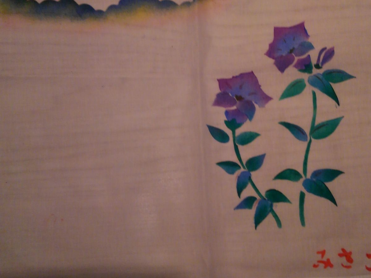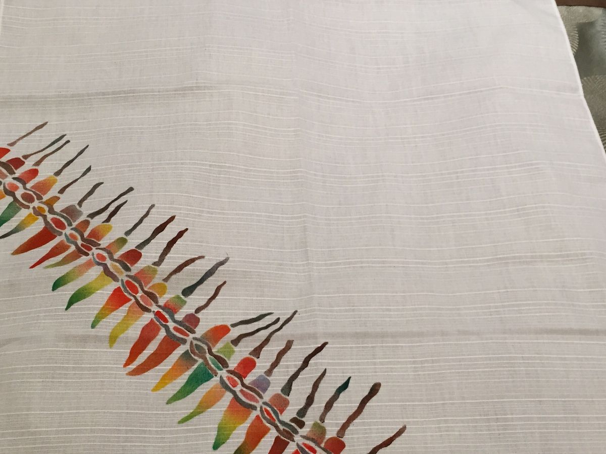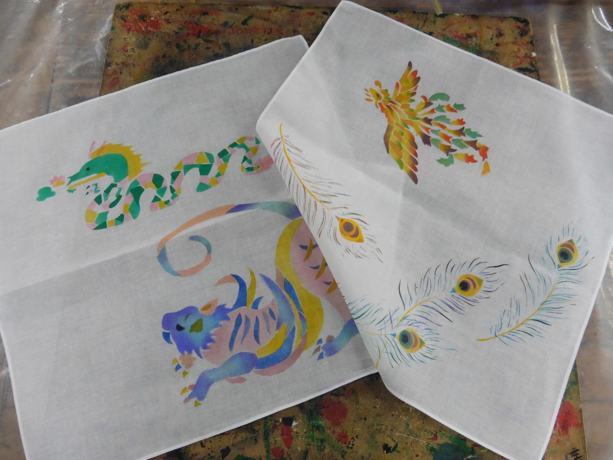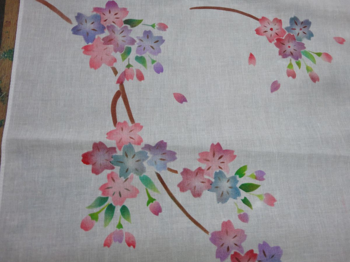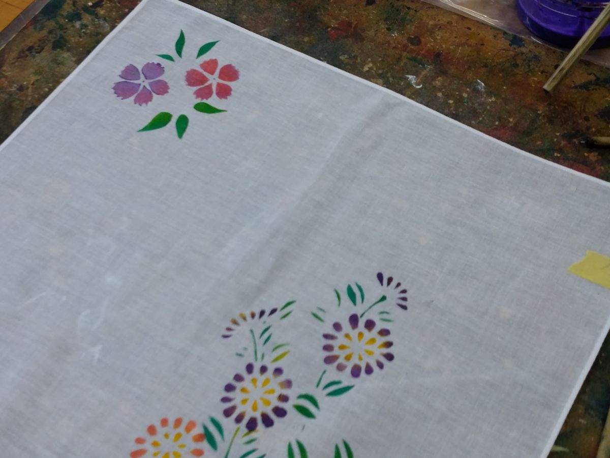 ハンカチなら1時間もあれば完成の予定が・・・夢中でハケを動かしあれやこれやで2時間半も経っていました。