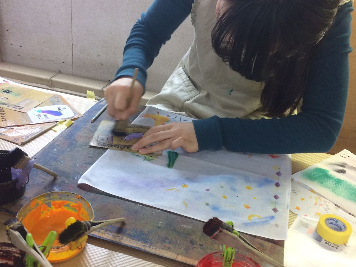娘たちもオリジナルハンカチ作りを