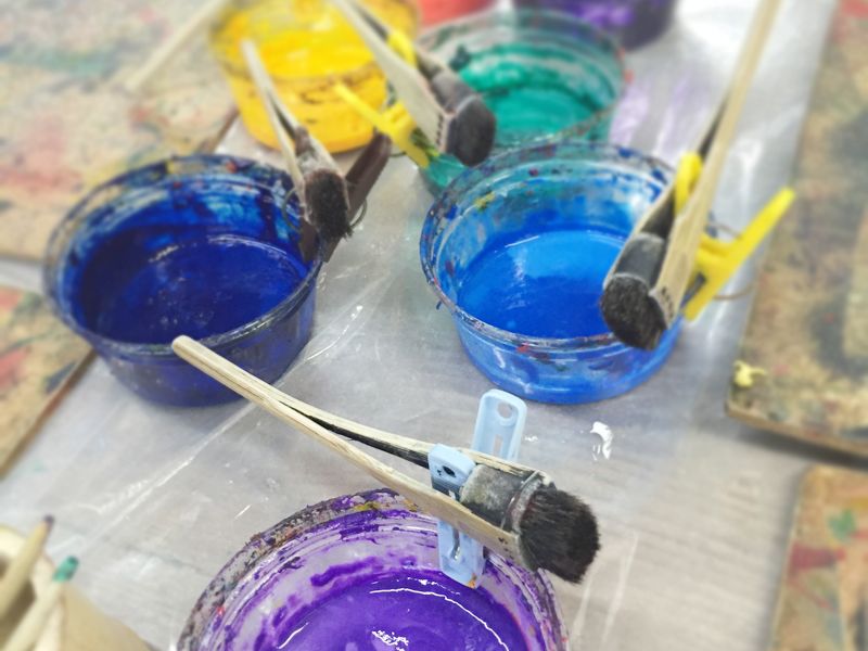 やり方はスタッフがちゃんと実演してくれてわかりやすかったですが、実際やるとその通りにならないので慣れるまでコツがつかめませんでした。10色ぐらいある染料を筆に取って、クッキングペーパーの上でなじませてからハンカチに色をのせていきます。薄い色から回数を重ねて濃くしていき、グラデーションもつけられました。ぬり絵のようにすごく集中することが出来て1時間ぐらいがあっという間に過ぎていきとても楽しかったです。