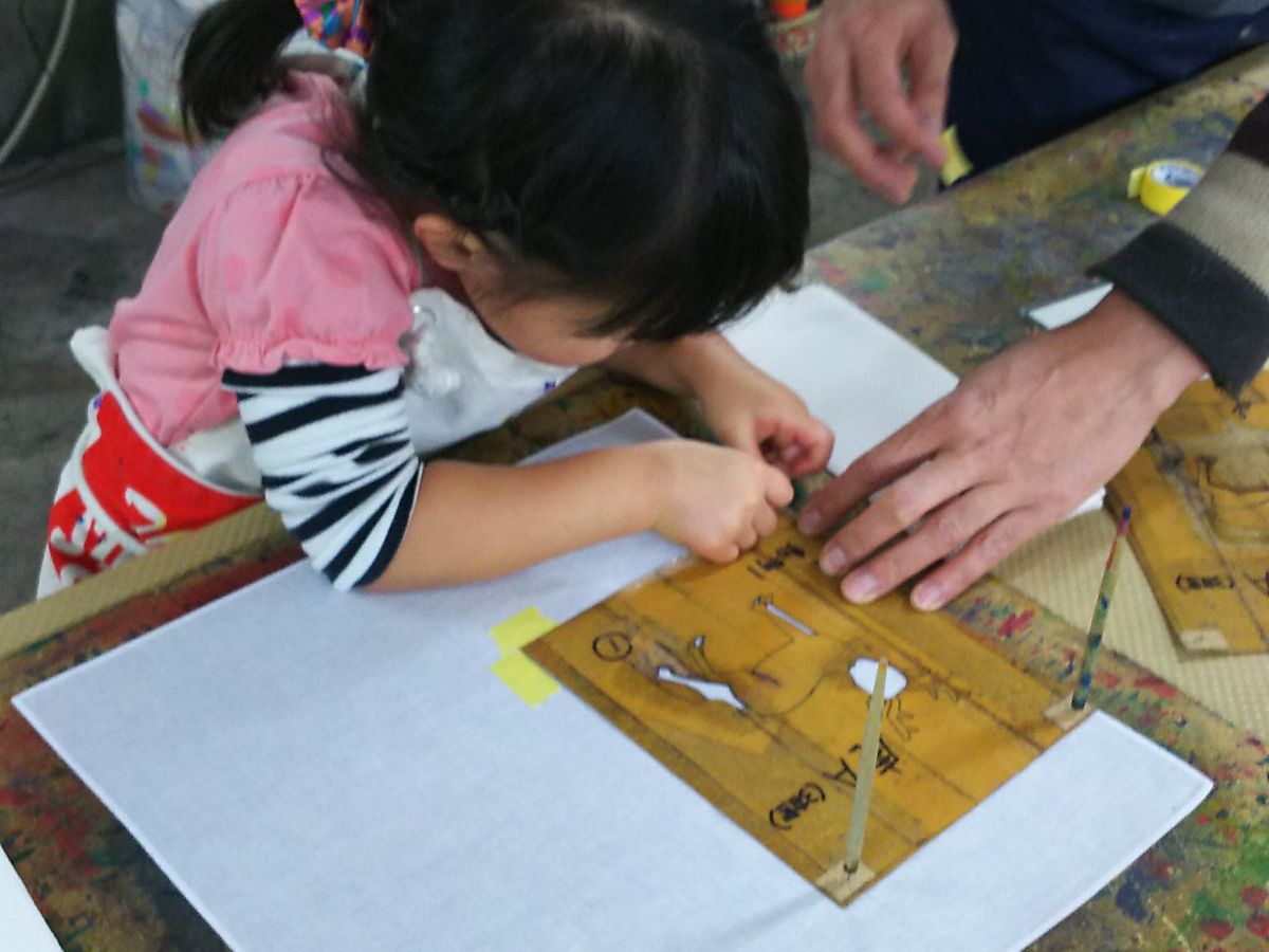 型紙をつかっての染め作業だったため、子どもから年配の方まで、幅広い年齢層のお客様がいらっしゃいました。