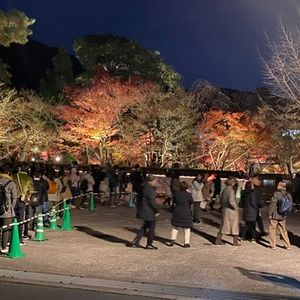 ライトアップも明日で終了というタイミングの平日の鑑賞でしたが、今年の紅葉は遅めだったせいか、とても美しい紅葉をみることができました。気温もそこまで寒さを感じることなく、混雑もそんなに気になるほどでもなく大満足の時間を過ごせました。お食事は期待していなかったので思っていたよりは良かったです。ただ椅子席ではなく、畳の大広間で座布団もなかったので、普段床に座って食事する習慣がないので そこは辛かったです。