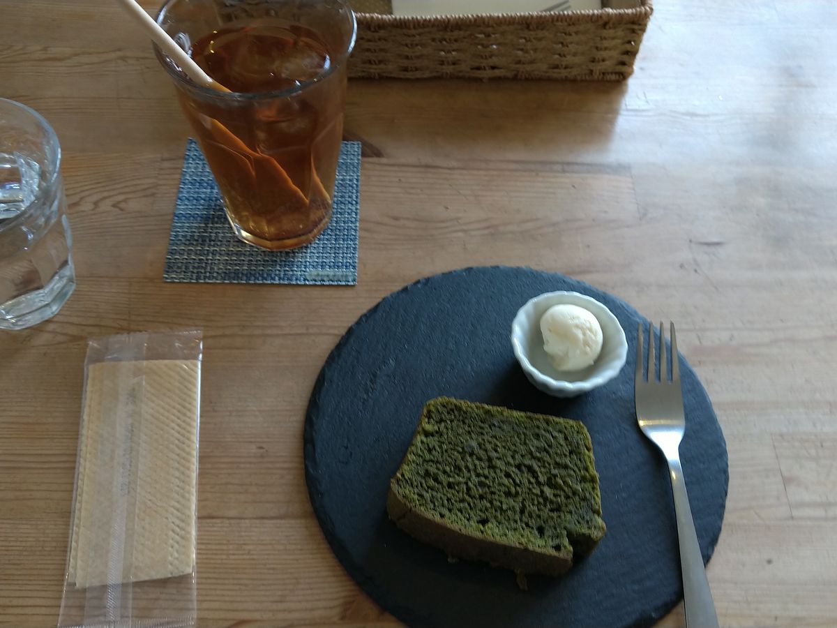 抹茶のパウンドケーキは苦みがあって、あったかい京番茶にとてもよく合いました。