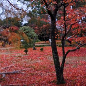 雨が少し降る12月半ばでしたが、いまだに紅葉が綺麗で、真っ赤な絨毯や小さな星形があちこちに装飾されていて美しかったです。