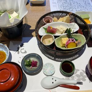 参拝後の「湯豆腐付き 京の竹かご膳」は京都らしくて、とても美味しくいただきました。