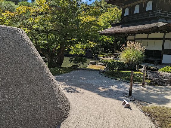 続く銀閣寺も、広い敷地と混雑のため急ぎ観光してバスに戻るも、杖をついた高齢の方が15分近く遅れ、運転手さんもガイドさんも2人で探しに行っていました。