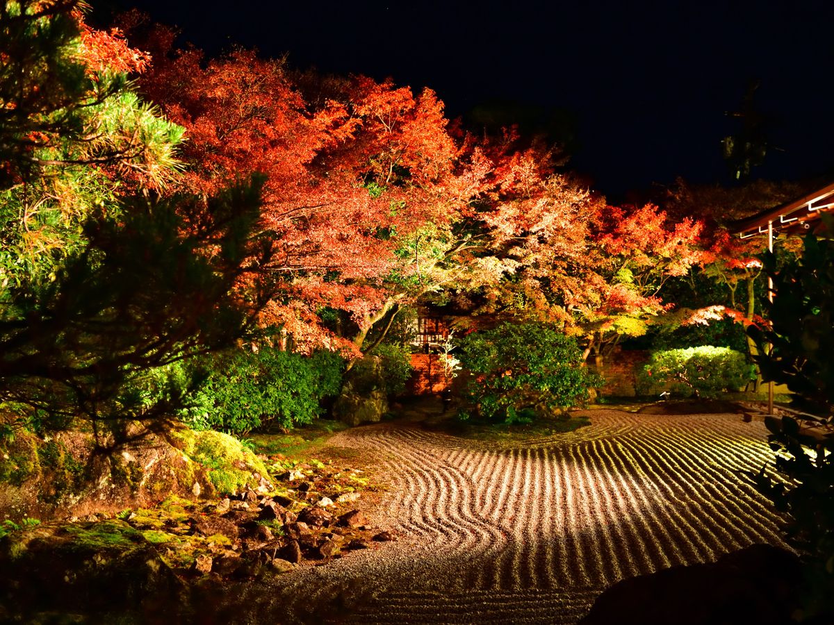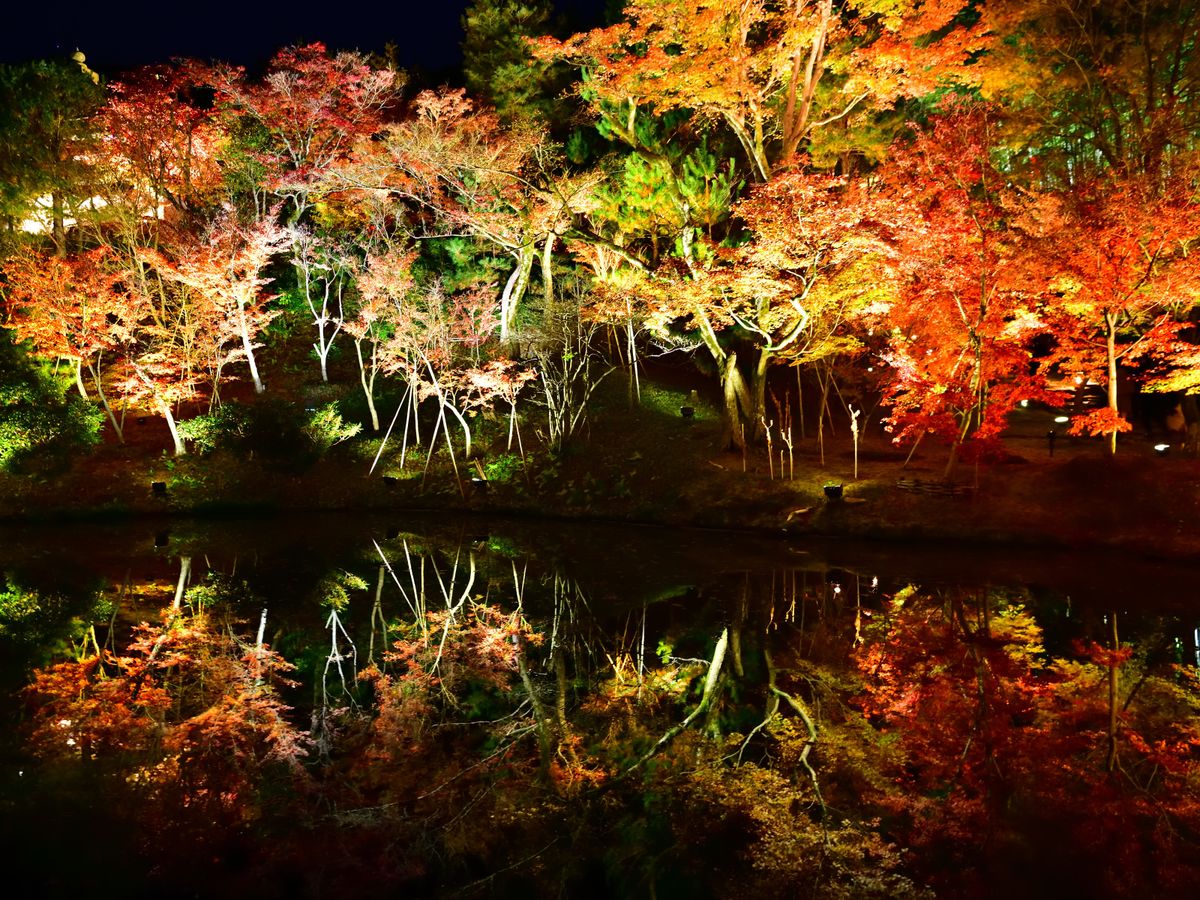 圓徳院+高台寺は、時間の余裕があり、ライトアップされ光景を楽しめました。高台寺のお池の鏡に映る紅葉の美しさは、まさに極楽を思わせるものでした。