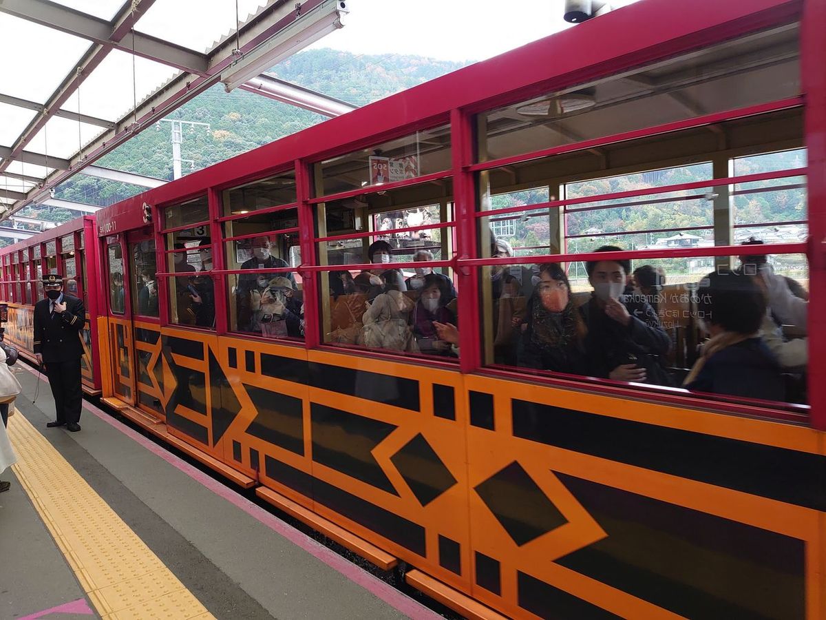 中でも、メインにしていたトロッコ列車の際には誤って、別の集合場所に着いてしまい、発車時間に間に合わない旨の連絡をツアーガイドにしたところ、トロッコ駅や指定座席を調整して、結果、乗車することができました。お陰で車窓からの紅葉満喫併せて、ツアーガイドさんの素晴らしい対応が、旅行の思い出エピソードになりました。