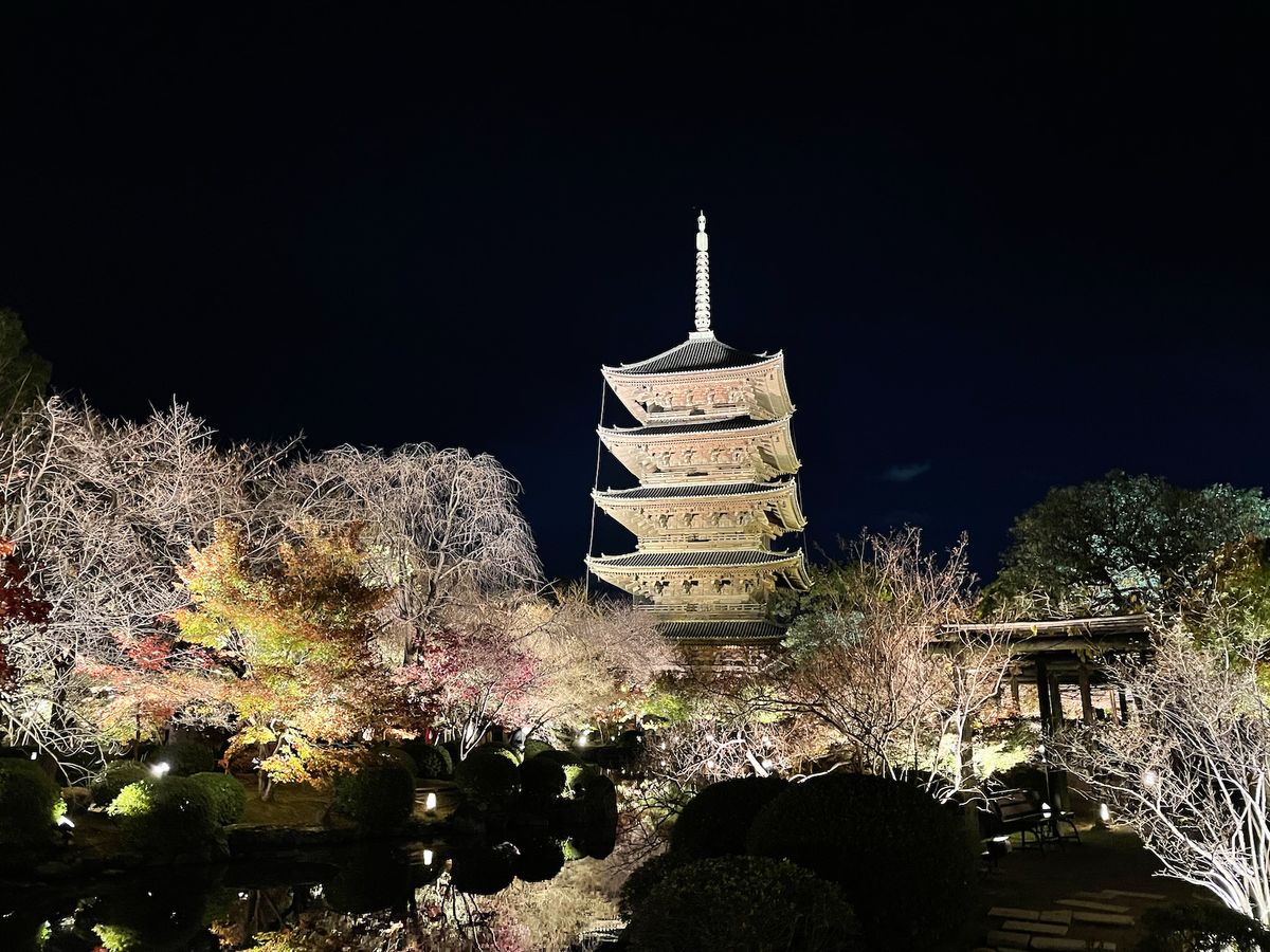 雲龍院は貸切だったので、ゆっとりと堪能できました。東寺ではガイドさんの案内でスムーズに入場ができて、1時間ぐらい滞在しました。二つのお寺とも紅葉ライトアップ鑑賞におすすめする場所です。