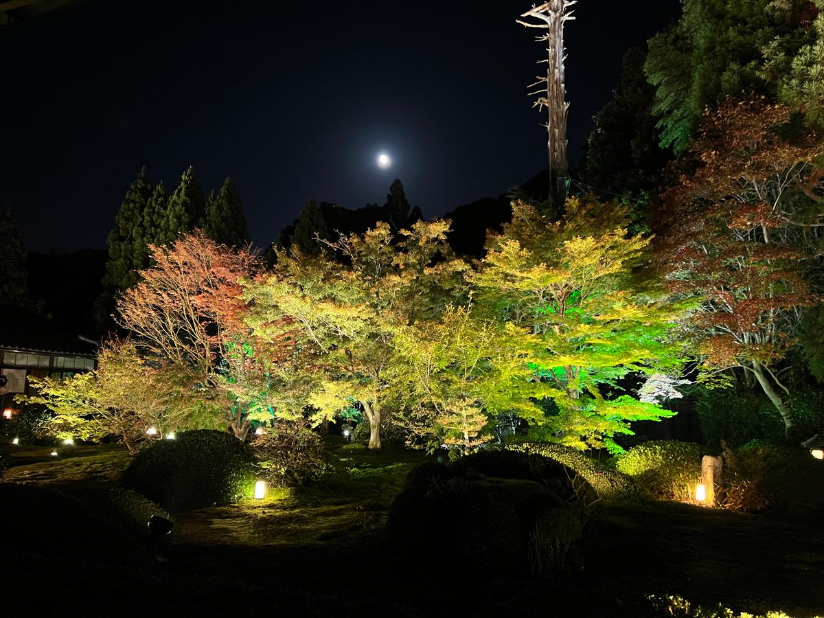 音楽と共にプロジェクトマッピングもあり、池に映る紅葉も凄く綺麗、月もちょうどまんまるで最高。