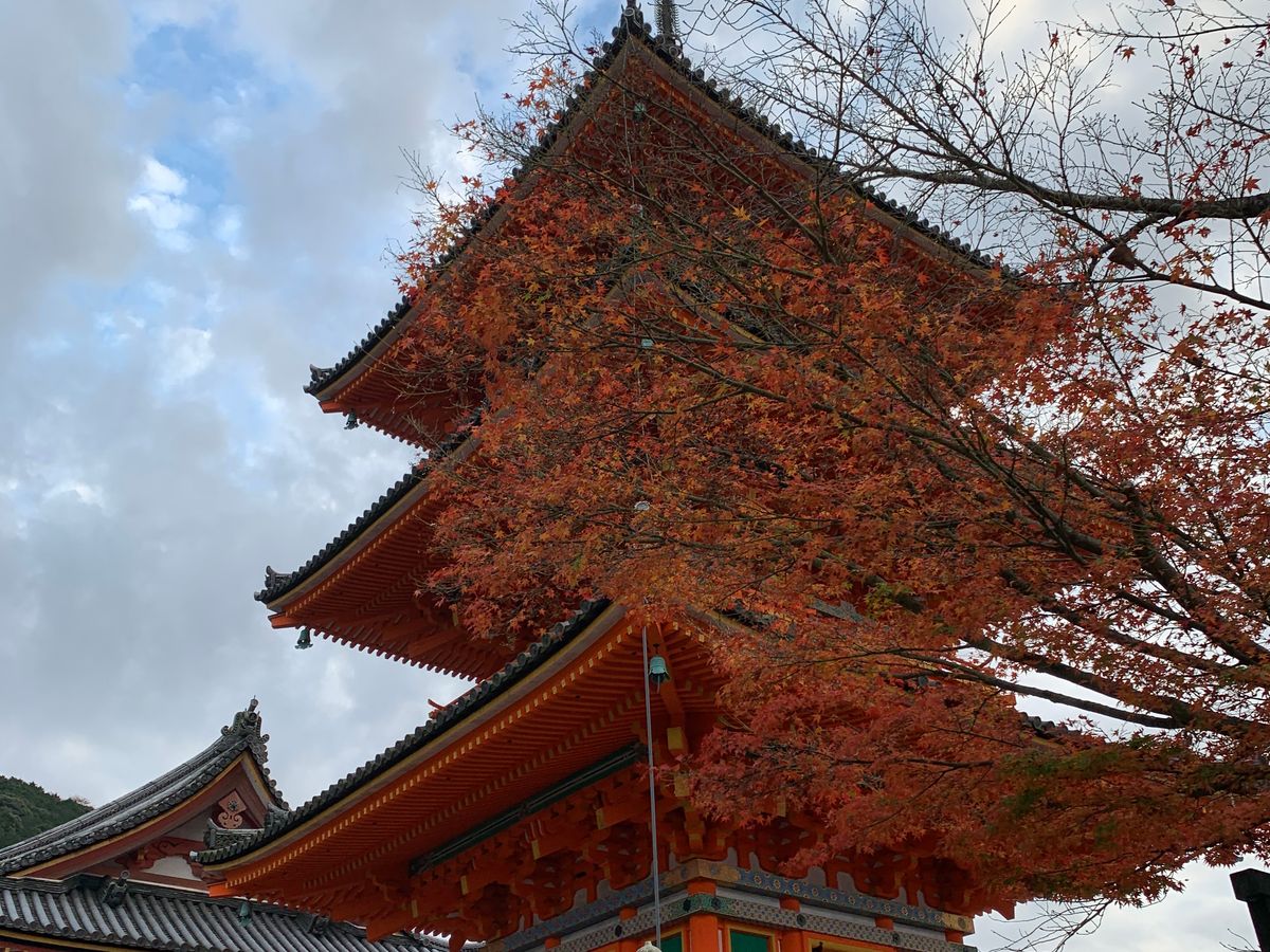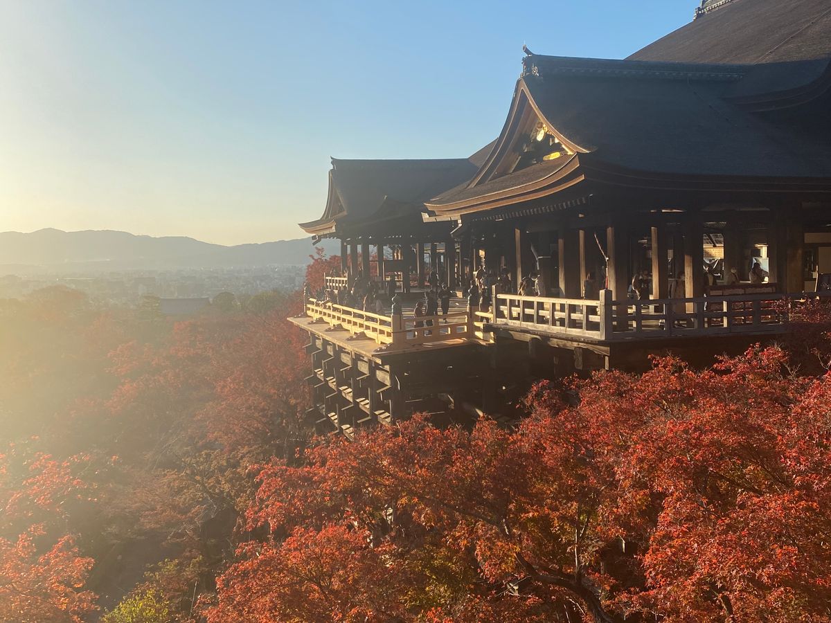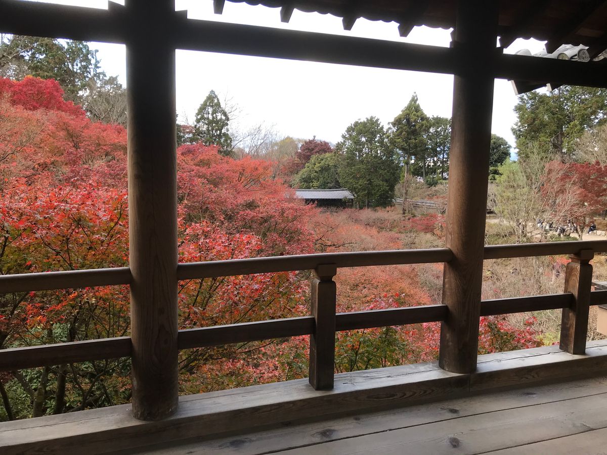 秋の観光シーズン、美しき京都はどこも観光客でいっぱいでした。伏見稲荷の千本鳥居を抜け、古都嵐山の渡月橋や長々と続く美しい竹林を経たのち、紅葉あふれる嵯峨野トロッコ列車での保津峡巡り、最後は清水寺、こちらも紅葉色ずく美しさと、清水の舞台の高さを目の当たりに感動しました。