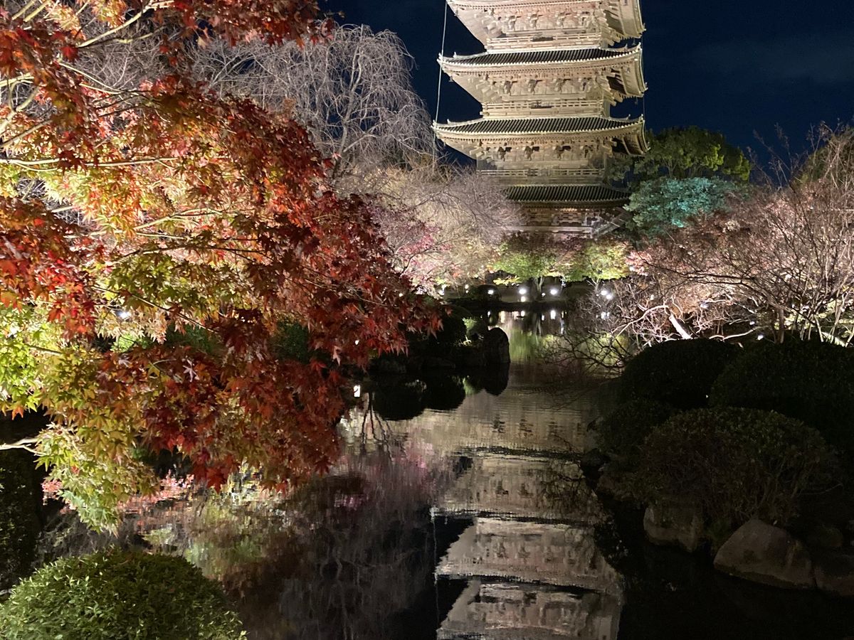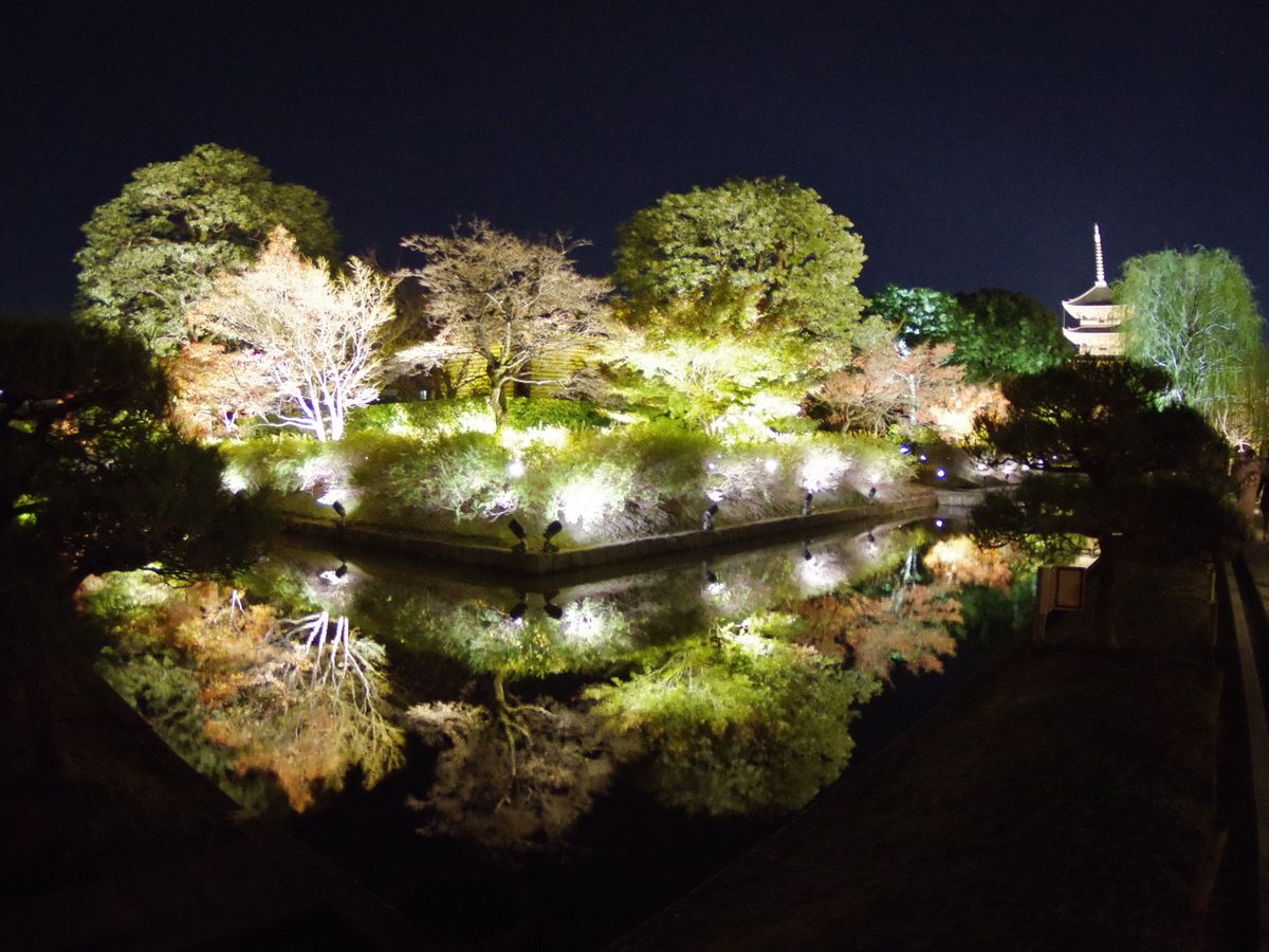 京都の秋1週間初日でした。北海道は零下1度でしたが、京都は15℃と過ごしやすく午後は東福寺と三十三間堂を廻りました。ライトアップはとても楽しみにしていました。御寺泉涌寺別院 雲龍院は期待通りでした。静けさの中で一服させて頂き、住職のお話を聞きながらゆったり見させていただきました。静寂なる空気感が気に入りました。次に東寺です。打って変わって、たくさんの人が見入っていました。見る場所が広く、さらに写真に収めたいポイントもたくさんあり満足でした。もう15分くらい時間があったらいいなあと思いました。