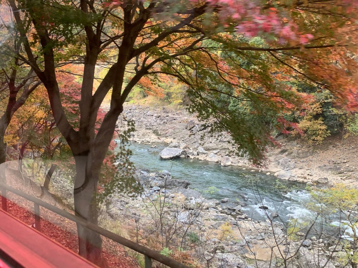 ガイドさんからは左右どちら側の席になっても保津川の景色は見れると説明を受けていたのでどちらの席になっても安心だなと思いました。