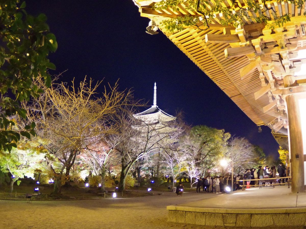 ナイトツアーとしての金堂も見ごたえがありました。薬師如来、日光菩薩、月光菩薩は凛としながらも慈しみを放っていました。