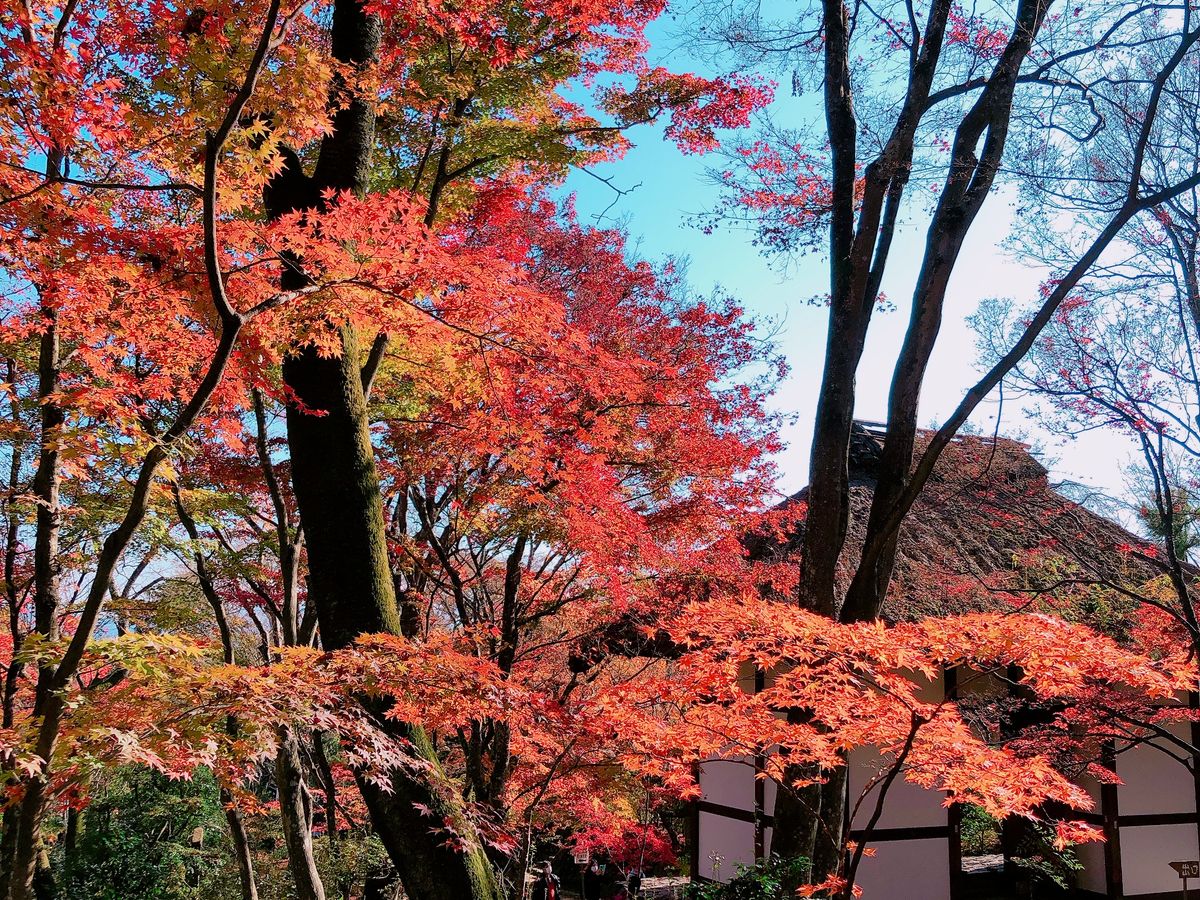 紅葉の赤、空の青、竹林の緑と、お写真もとても綺麗ですね。