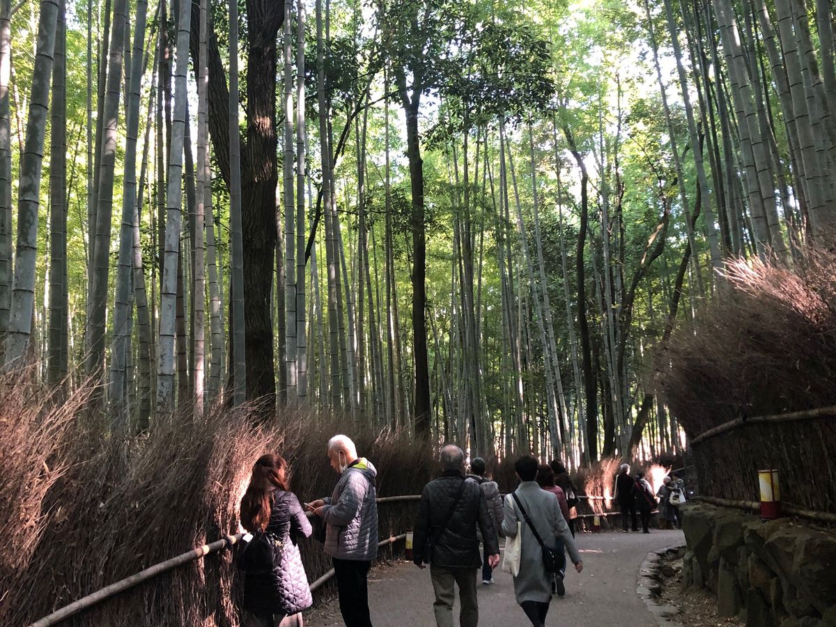 伏見稲荷大社からスタートし、嵐山、トロッコ、清水寺へと訪れました。紅葉の時期で、しかも日曜日だったので混雑を覚悟していましたが、思っていたより人が少なくて、良い写真が撮れました。嵐山ではお昼は自由時間の中で食べることになっていて、私達夫婦は私の幼い頃の思い出のお店「錦」に伺いました。とても美味しいお食事でした。トロッコ駅までの道も素晴らしい竹林で風情がありました。トロッコ列車からの景色も良かったです。清水寺は改装工事がちょうど終わったところで、綺麗な清水の舞台を観ることができました。