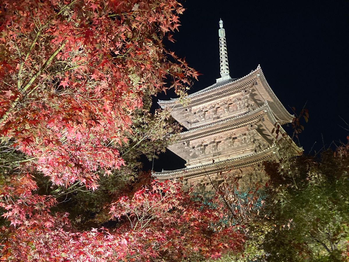紅葉とライトアップがマッチしてとても綺麗でした。夜は雰囲気も最高神々しく感じました。