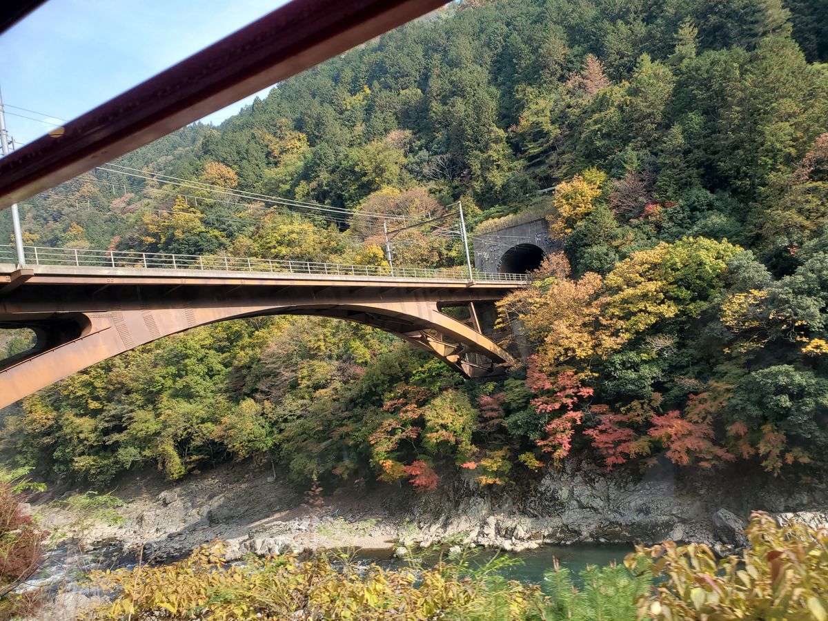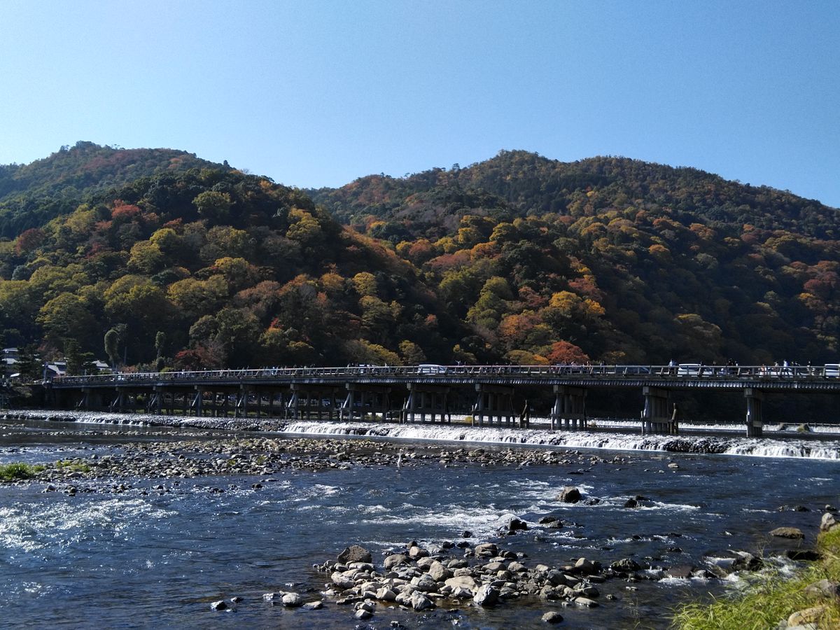 久しぶりの京都観光。紅葉狩りは初めて。トロッコ列車からの眺めは、サイコーでした!