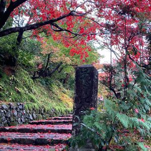 途中の西明寺は紅葉並木の川沿いをぶらぶら歩いて気軽に行けるお寺、神護寺は階段が多く高い場所にあるお寺だったので体力のことも考えて西明寺へ行きました。