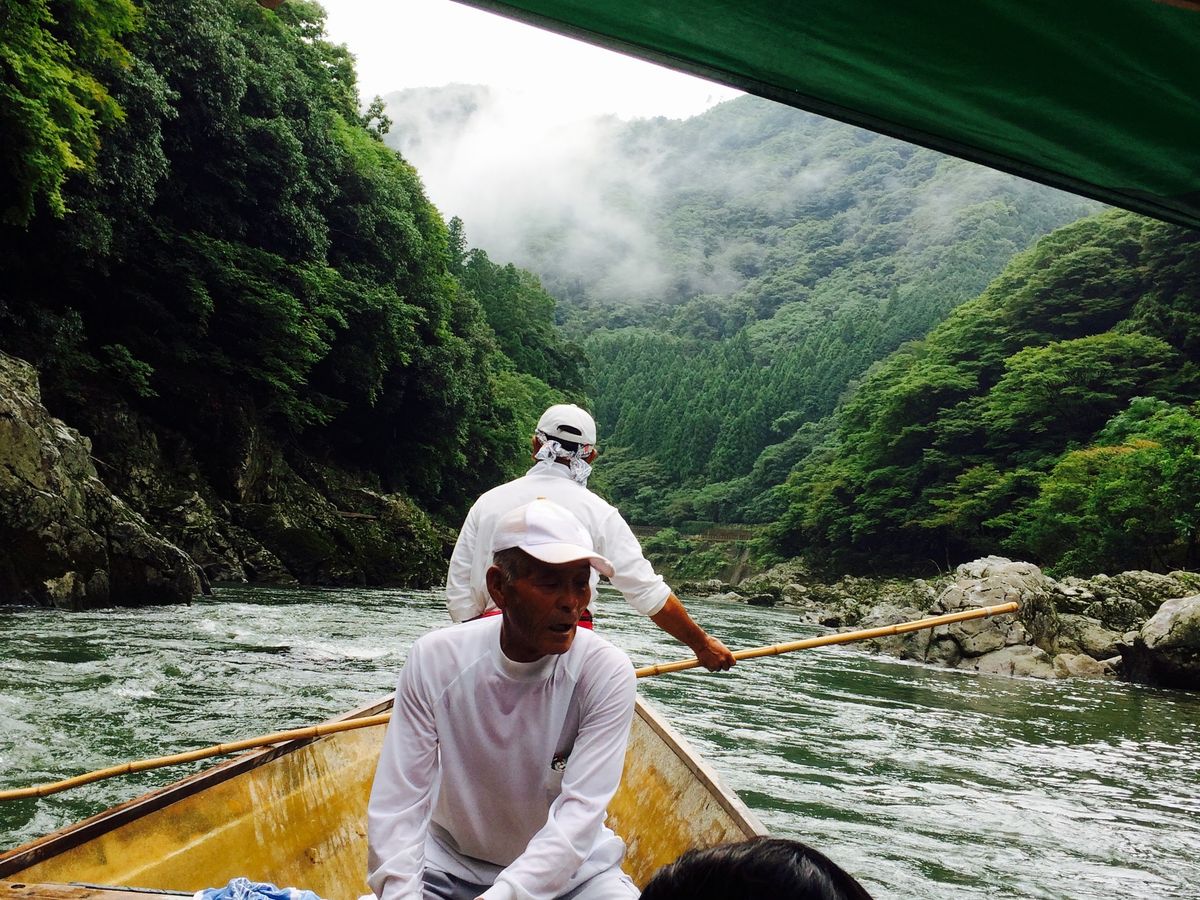 保津川是由京都盆地起源流经古代丹波国的领地亀岡市直至京都岚山的一级河川,它穿越丛山峻岭,一路奔腾而下,经过一千二百多年的风雨洗礼始终支撑着京都的水运文化,其中乘小木船涉险滩穿激浪顺流而下的漂流体验惊险刺激,与嵯峨野上的观光小火车互为背景相映成趣,展现出京都观光一道特别靓丽的风景线。