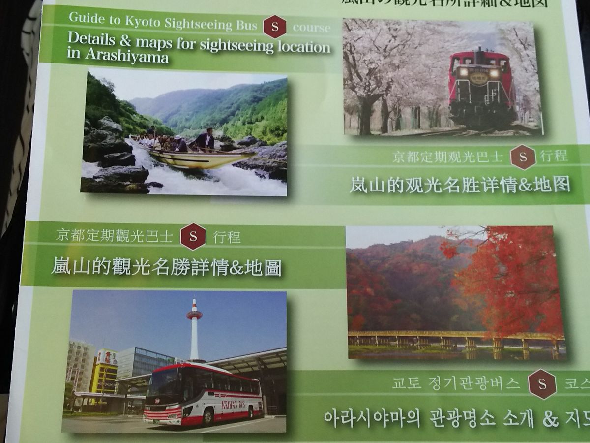 岚山经典游玩路线就是乘坐嵯峨观光小火车和保津川漂流到岚山。本来打算自己预定,可能是周六的缘故,网上预订已经没票了。再看了攻略,发现自己预定的话,需要排队等待很长时间。因此比较了一下,最后还是决定报一个一日游。