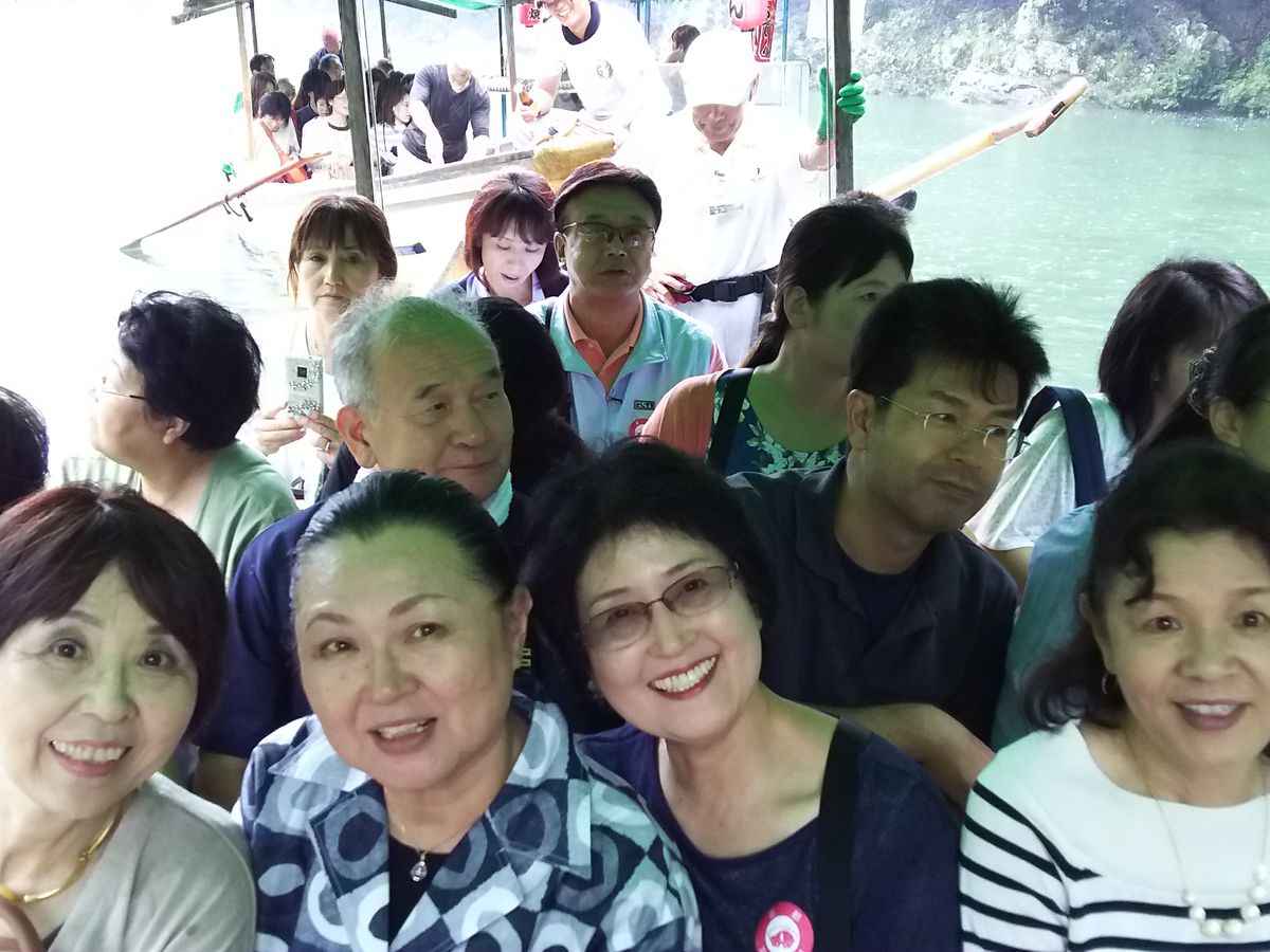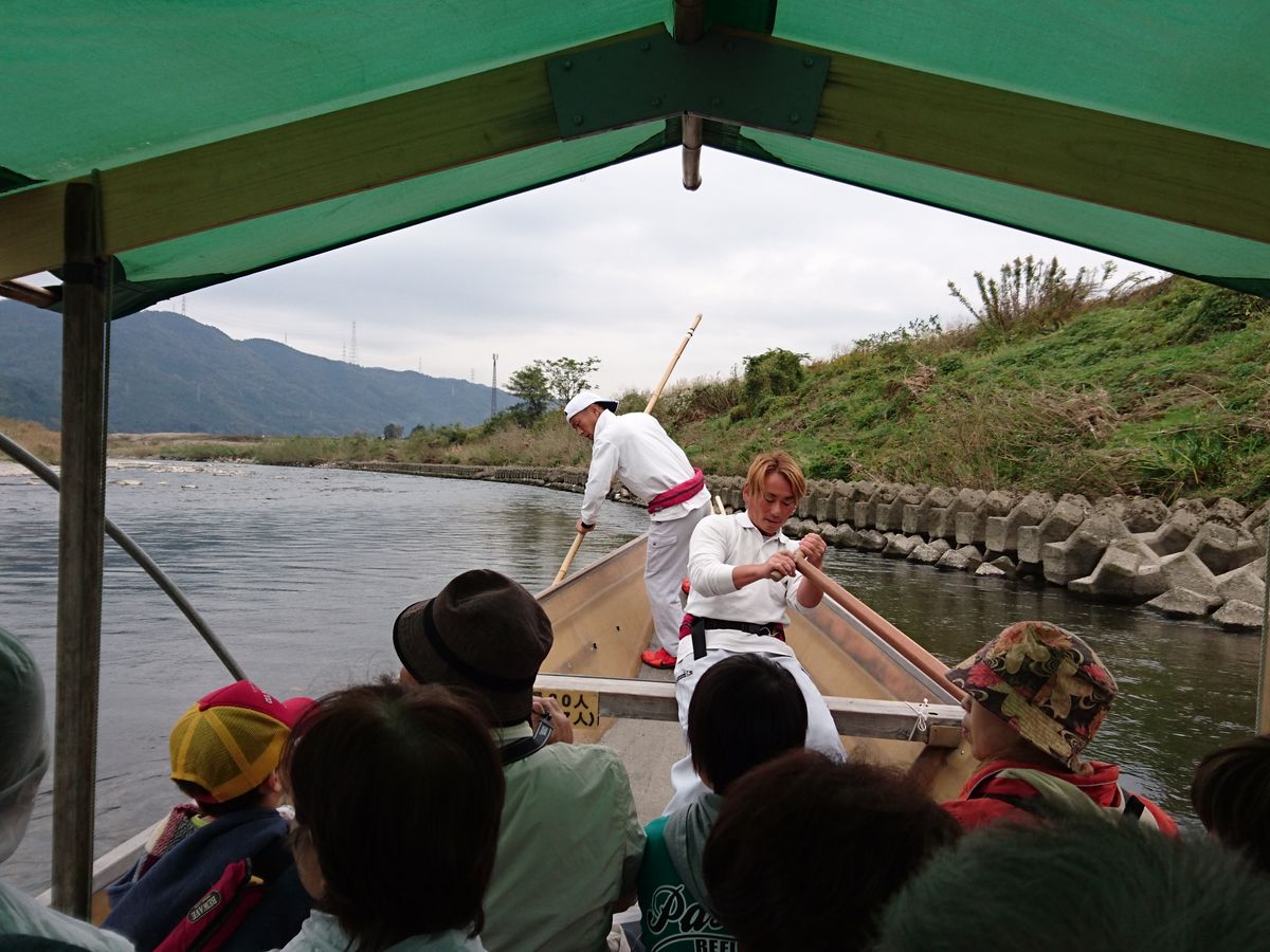 いざ川下り〜船頭さん3人の軽妙なトークに大笑い、時々上がる水しぶきにキャー!約100分の川下りを楽しみました。