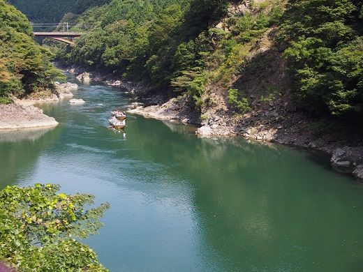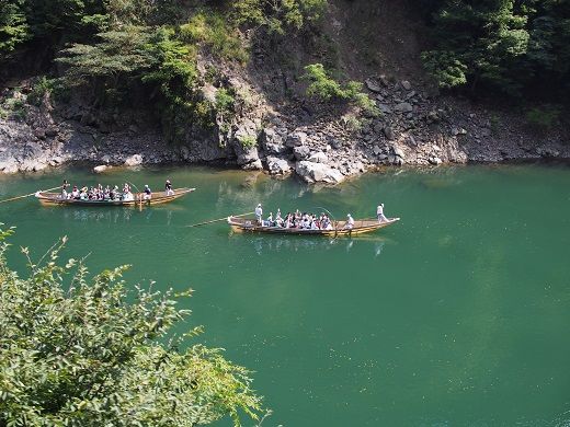 紅葉にはまだ早かったですが、天気にも恵まれ楽しかったです。川下りの船頭さんの御話も面白くてあっという間でした。