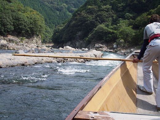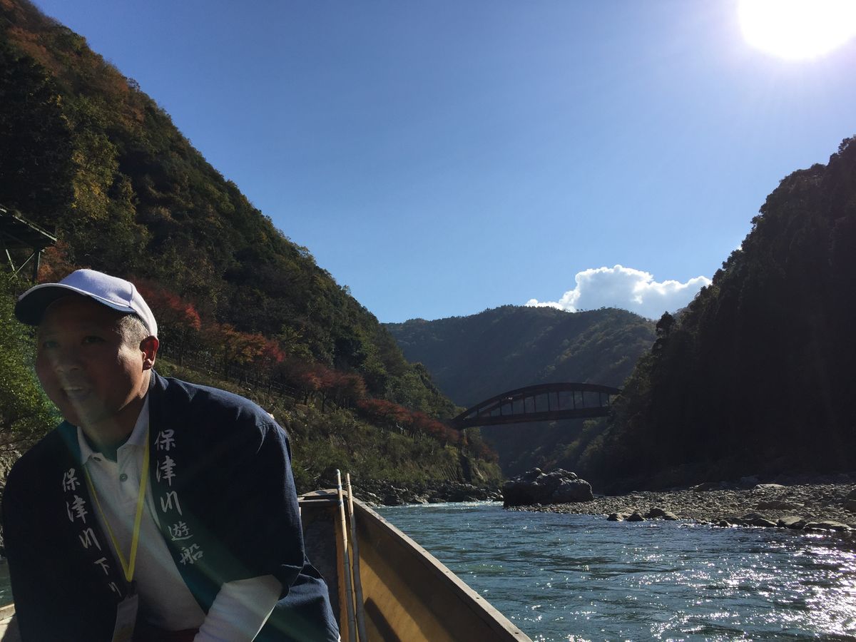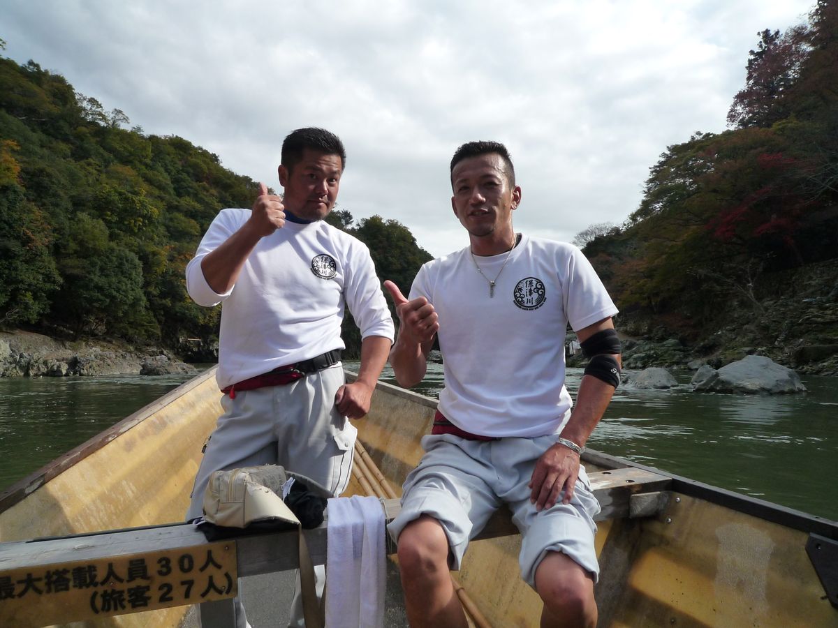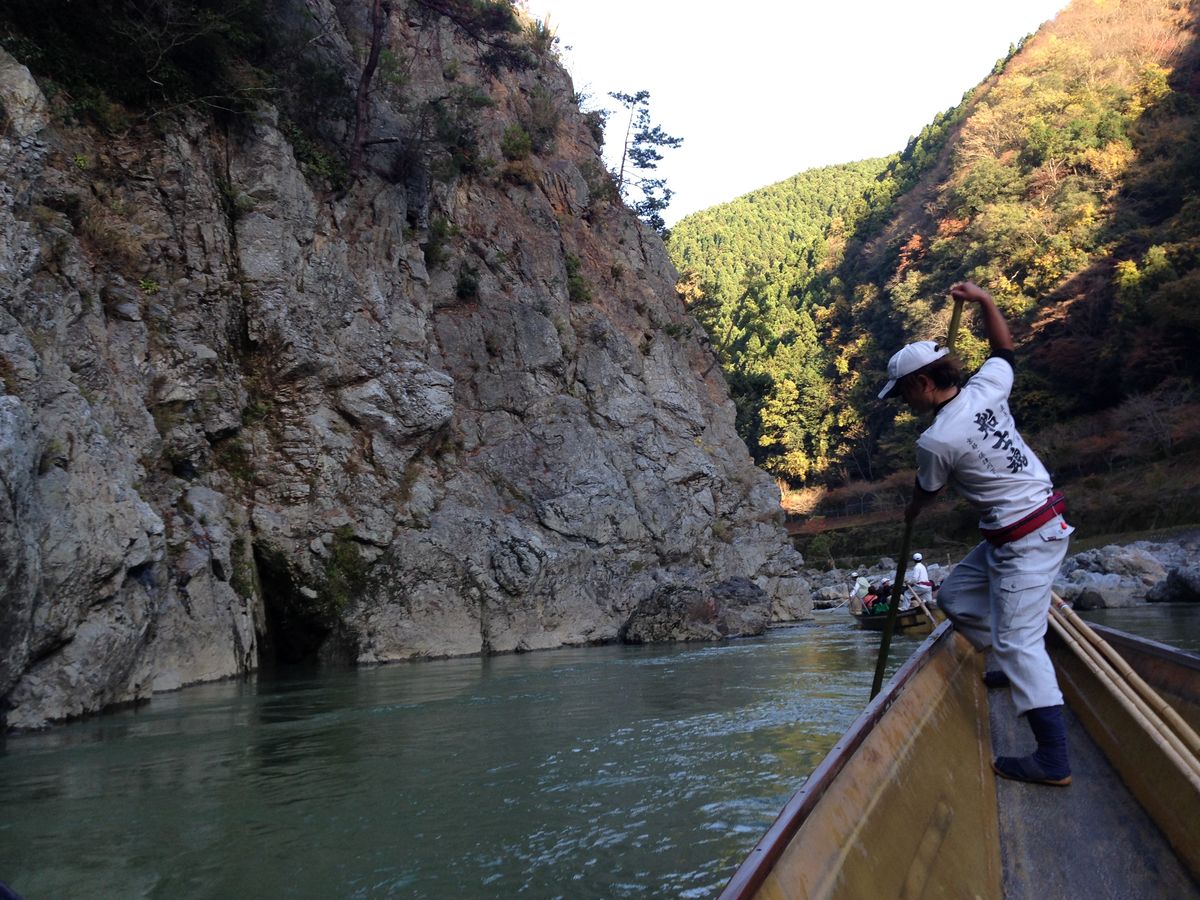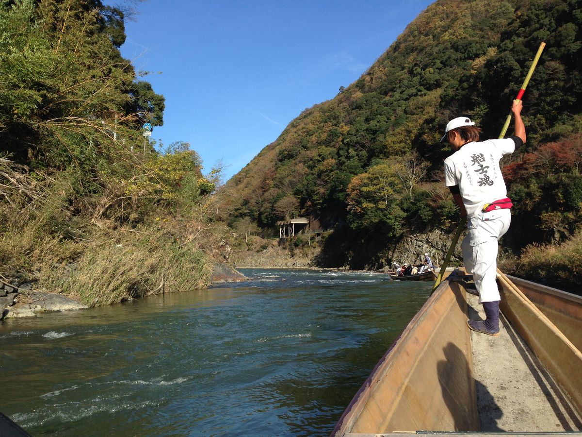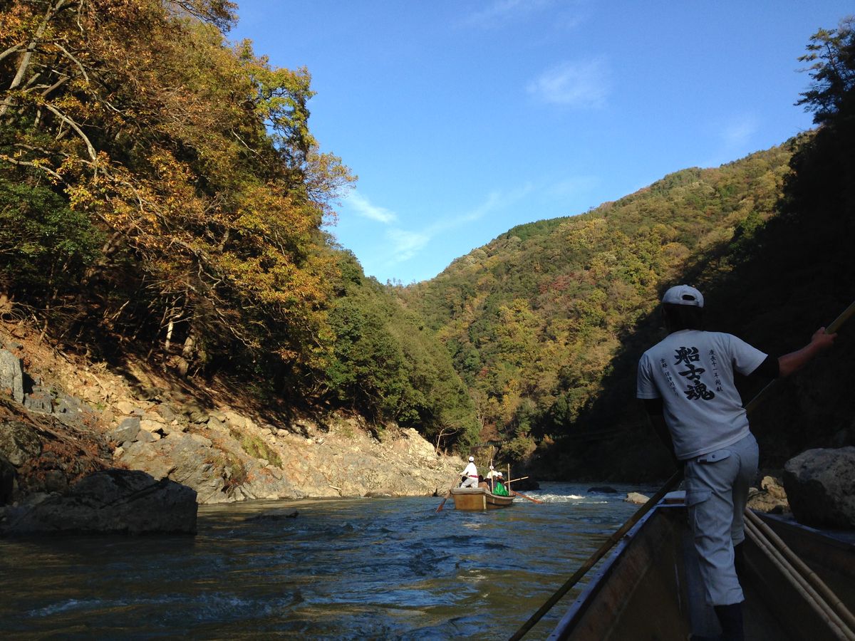 筋肉がたくましい船頭さんたちと一緒に秋の保津川へ。