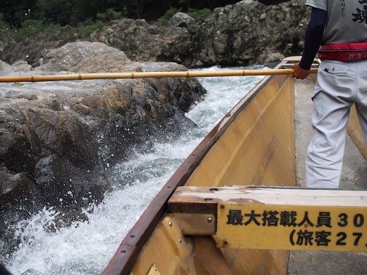 最初のほうは流れも穏やかなので船頭さんのお話しを聞きながらまったりと景色を楽しんでいたのですが、途中なんか個所か流れが急で思いっきり水しぶきが!スリリングで楽しかったけど、秋の水は冷たかった!