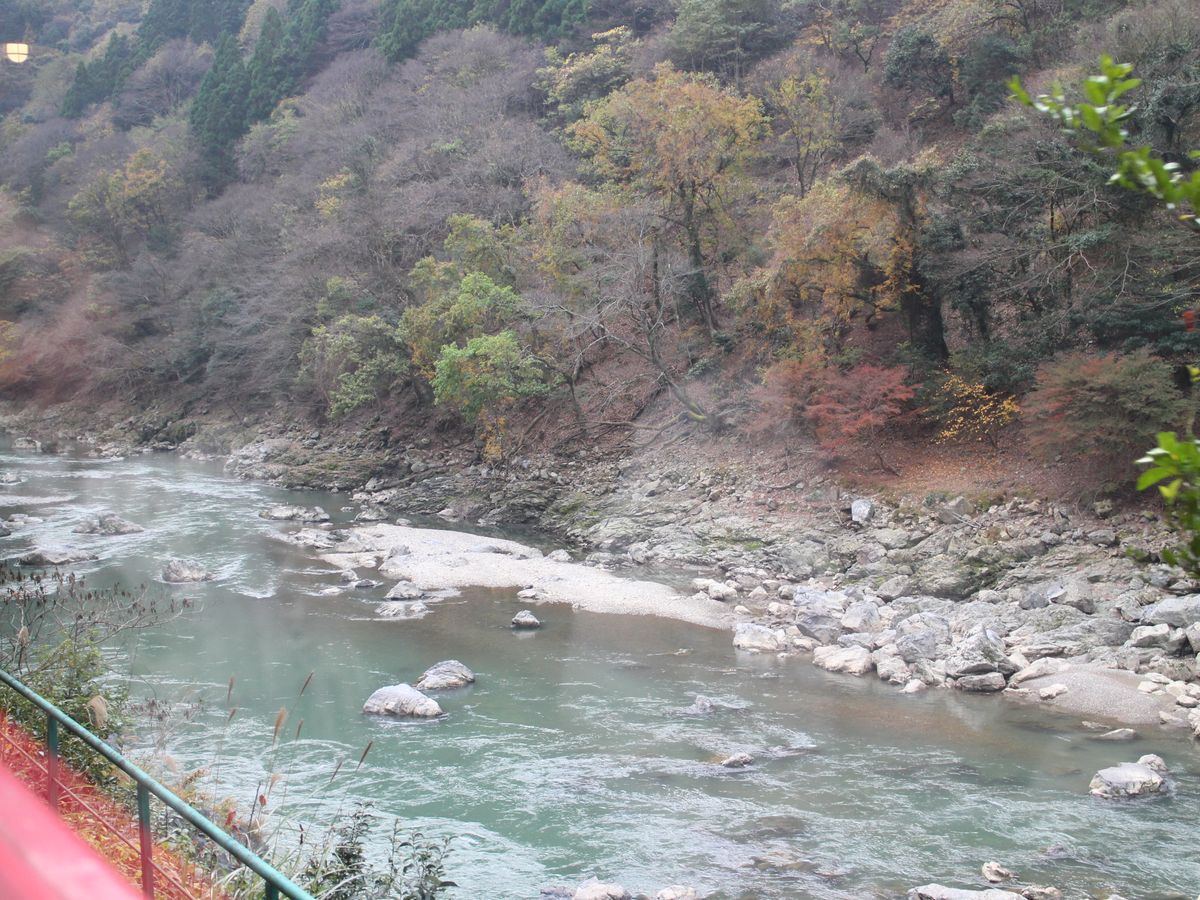 紅葉は、今年は色づきが悪いそうだが、嵐山付近はとても綺麗でした。色づきが良い年は、火事のように真っ赤な紅葉と川面の水色と映えるだろうと想像出来ました。紅葉的には残念でしたがそれをカバーする船頭さん達のコンビネーションの良い、掛け合い?トークで、あっという間の100分巻でしだ。