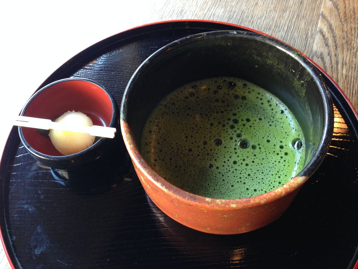 天龍寺も人気だったけど、おなかがすいてたしすごい人だったので、中庭のきれいなカフェで小休憩。お抹茶と抹茶のケーキを堪能。