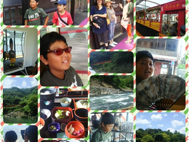 昨年は自分たちで電車を乗り継いで嵐山に行きました。竹林を抜けて嵐山からトロッコ電車に