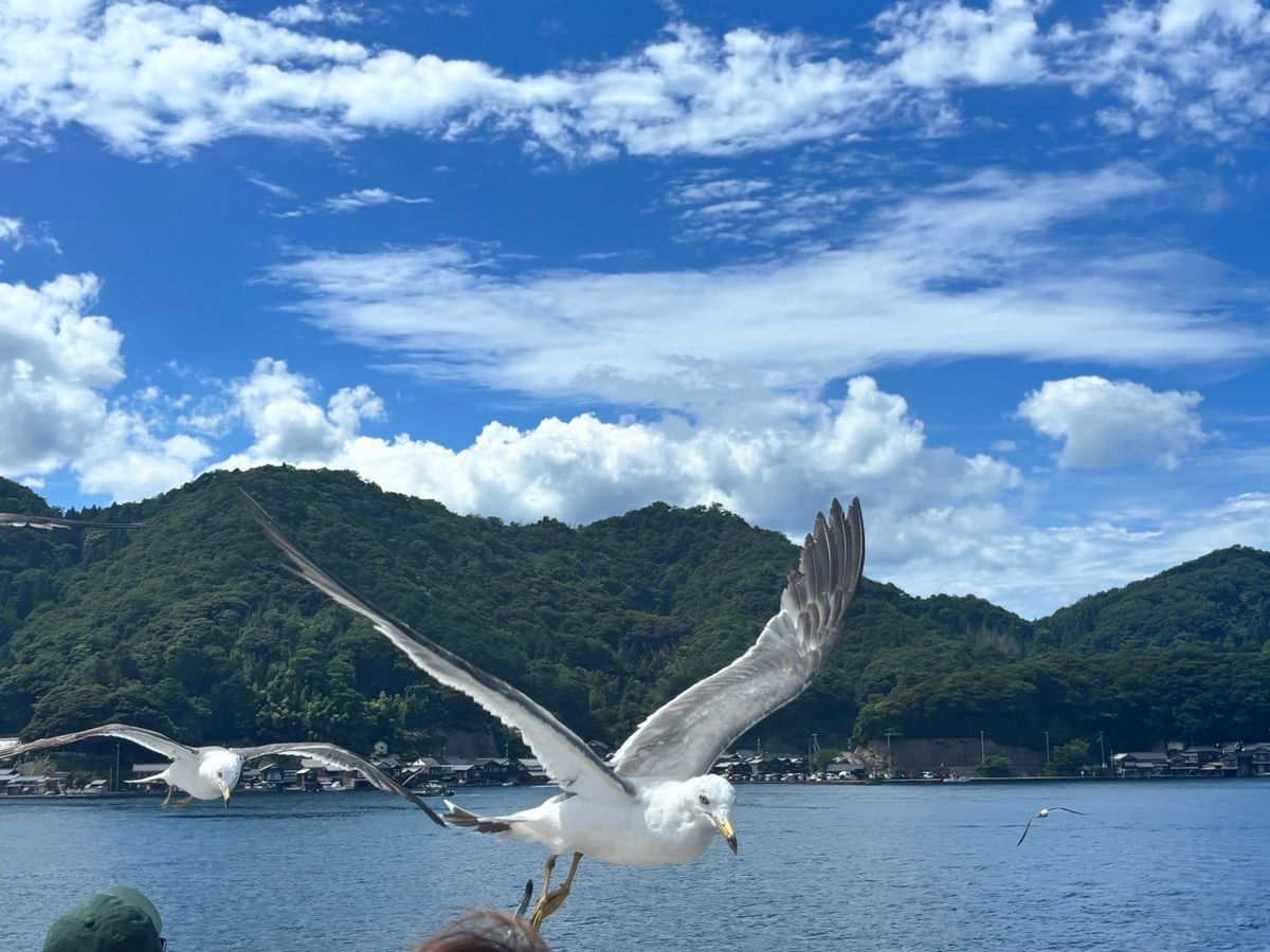 伊根湾の遊覧船は景色を観るというよりうみねこや、とんびに餌をあげるのに夢中の方が多かった印象です。説明の音声が船のエンジン音で聞こえづらかったのが残念でした。