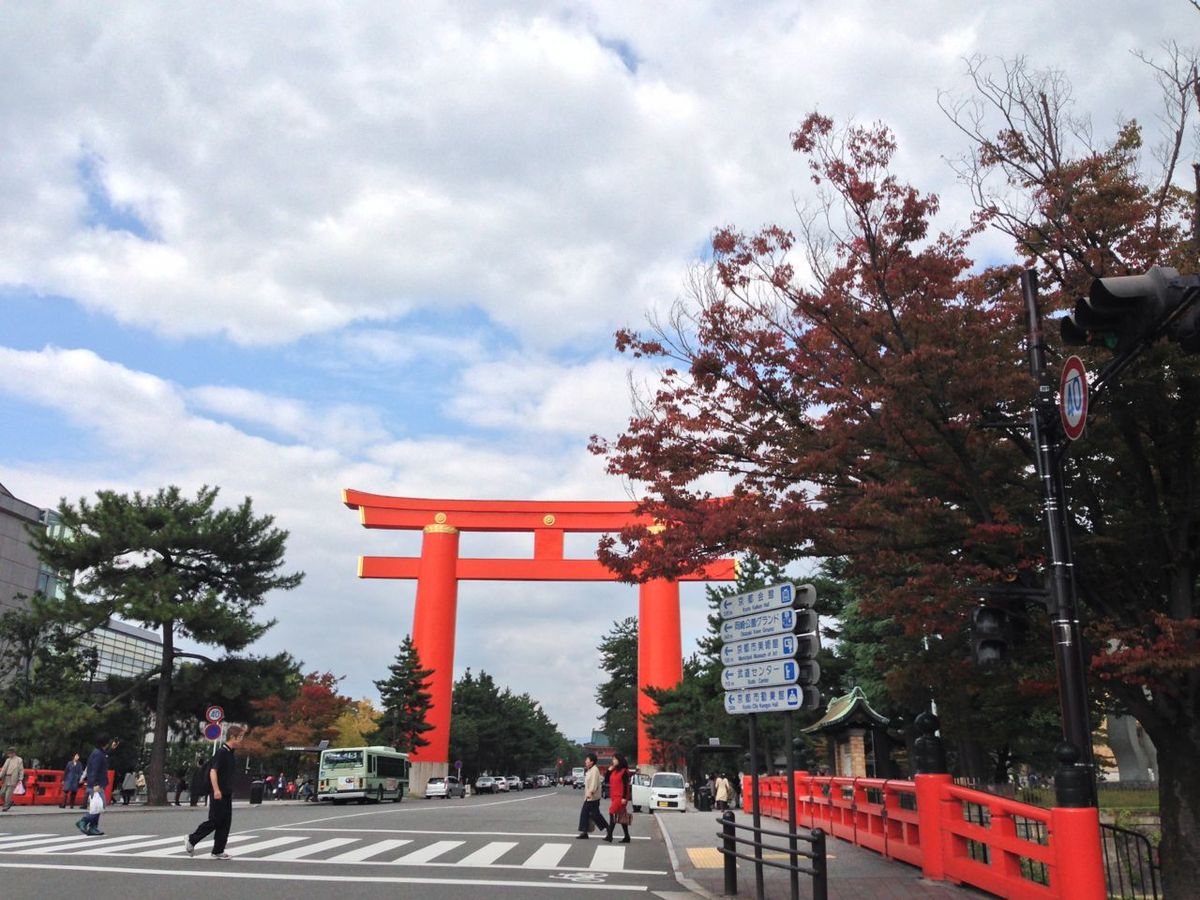平安神宮の鳥居の高さを、実際に自転車で近づくことで本当に感じることができます!