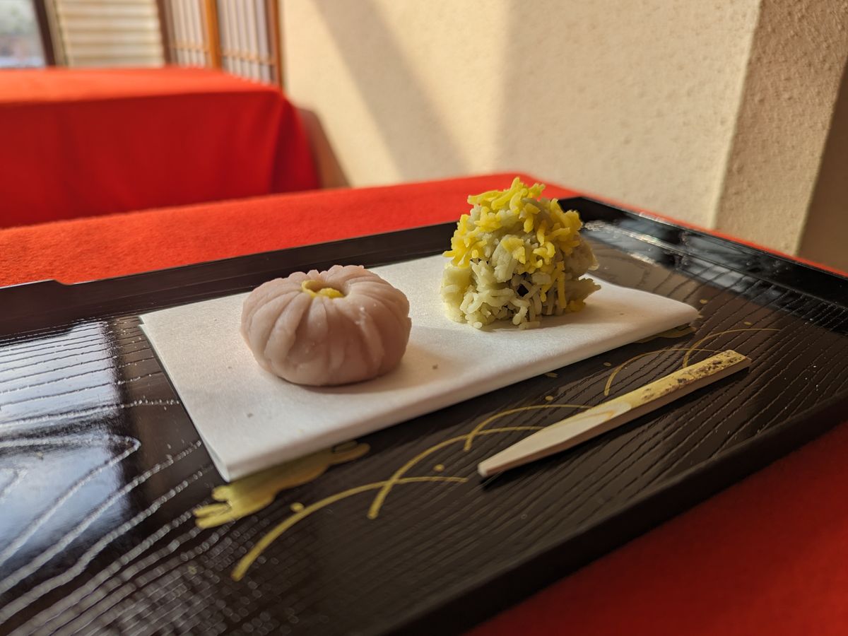 お菓子と抹茶を味わえて良かったです。帰りの新幹線前にちょうどチェックアウトした後でタイミングもピッタリでした。