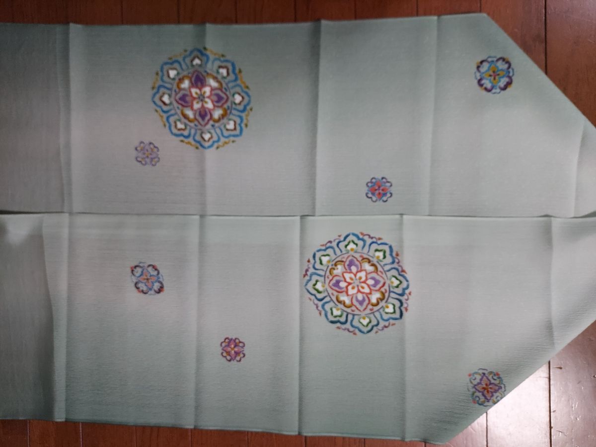体験後に、帯揚げ全体を希望の地色に染めて、自宅まで送ってくださいました。地色が入ると一段と美しくて、大感激!実際に使うのが楽しみです。丸益西村屋の皆さま、ありがとうございました。
