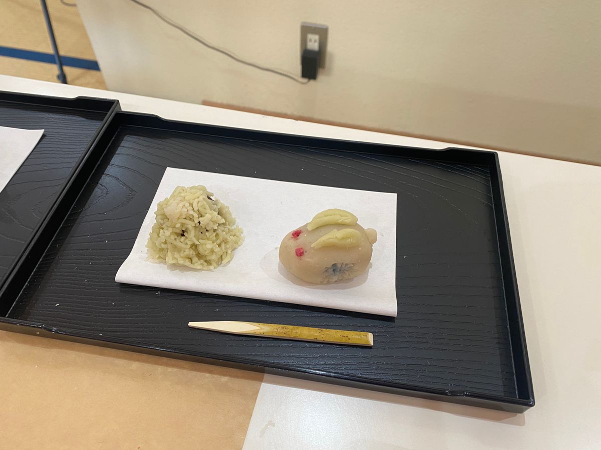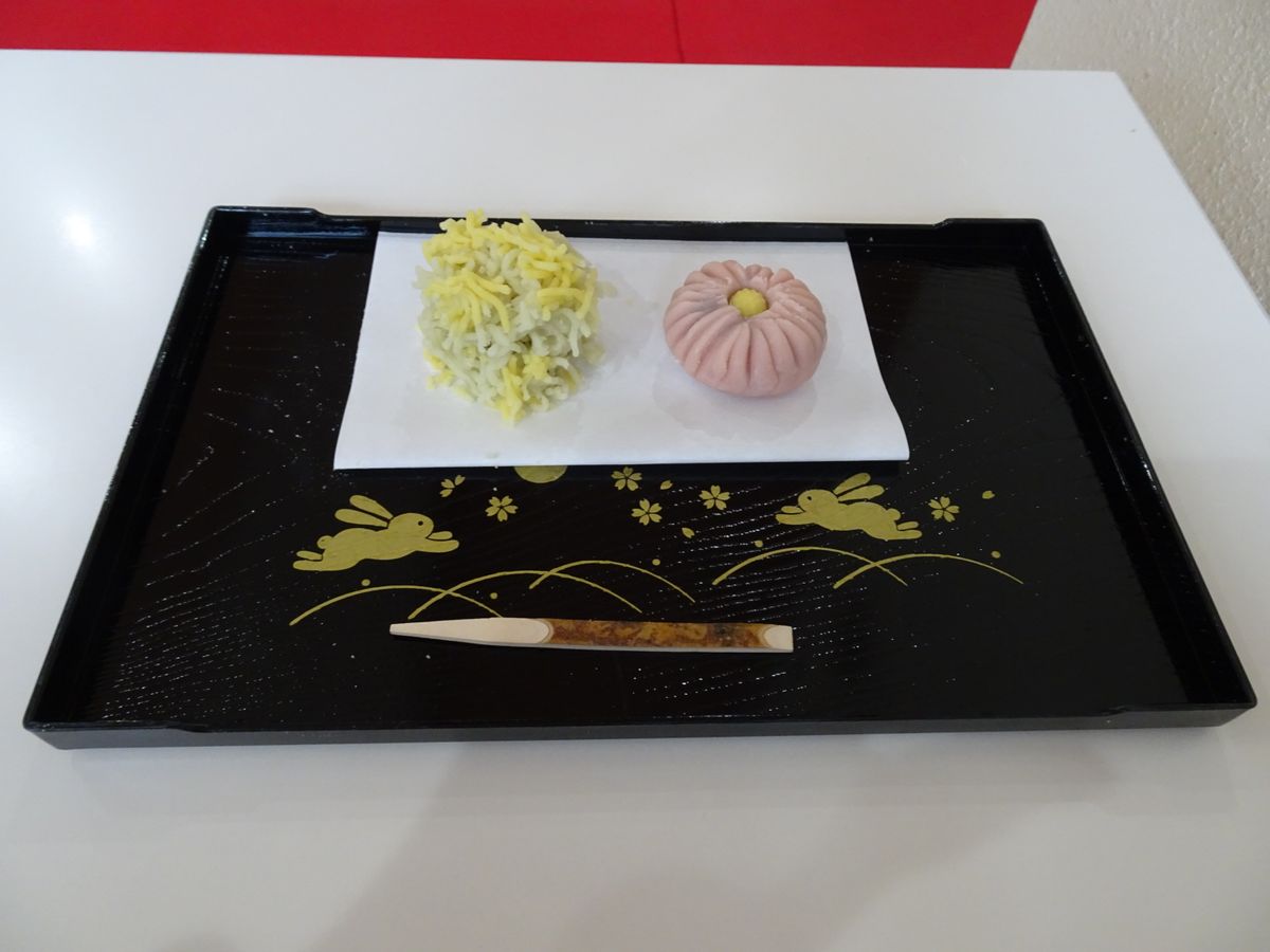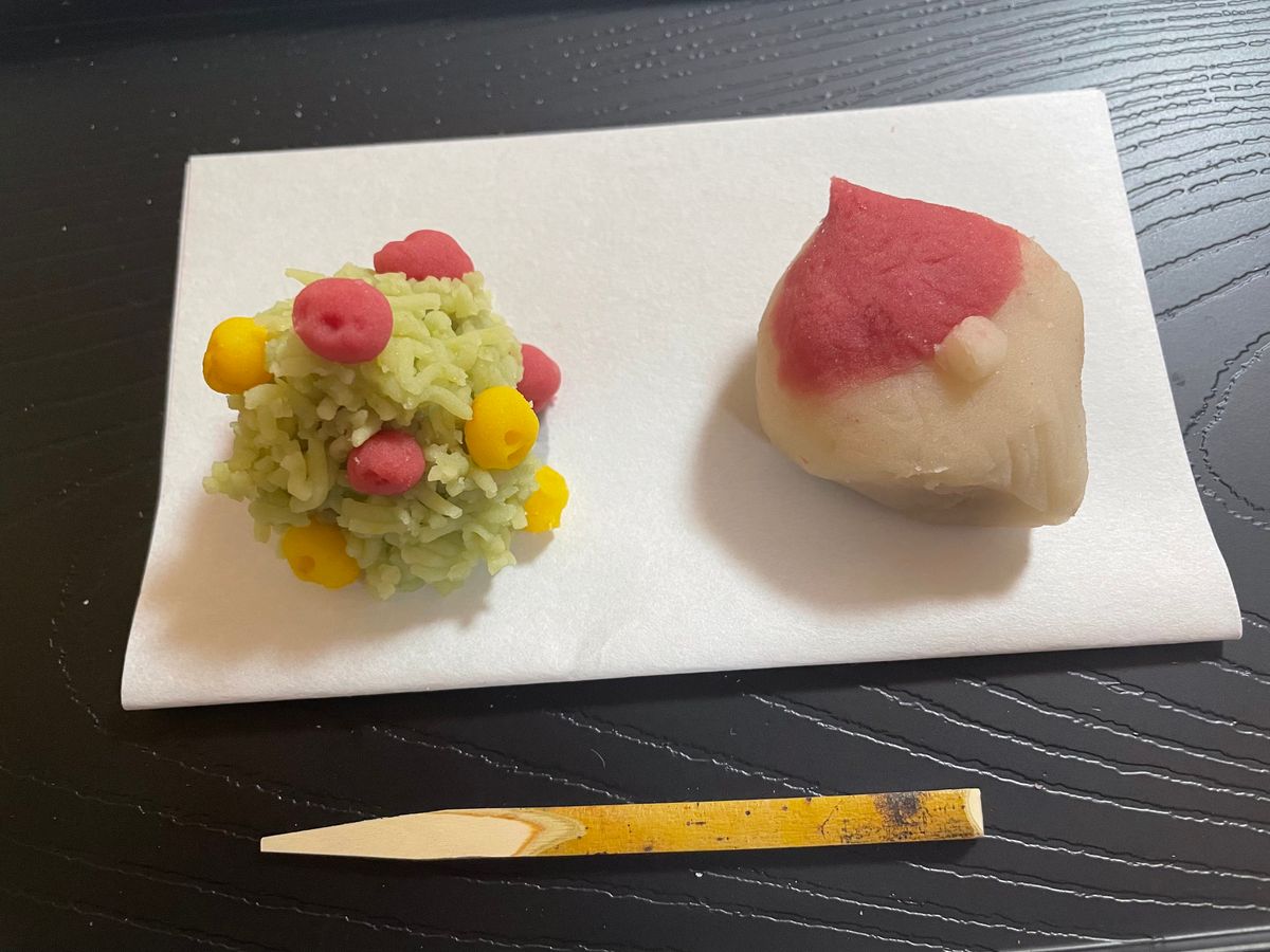 子供と一緒に和菓子作りができ出来映えはそれなりでしたが最後に自分が作った和菓子を美味しくいただきました。